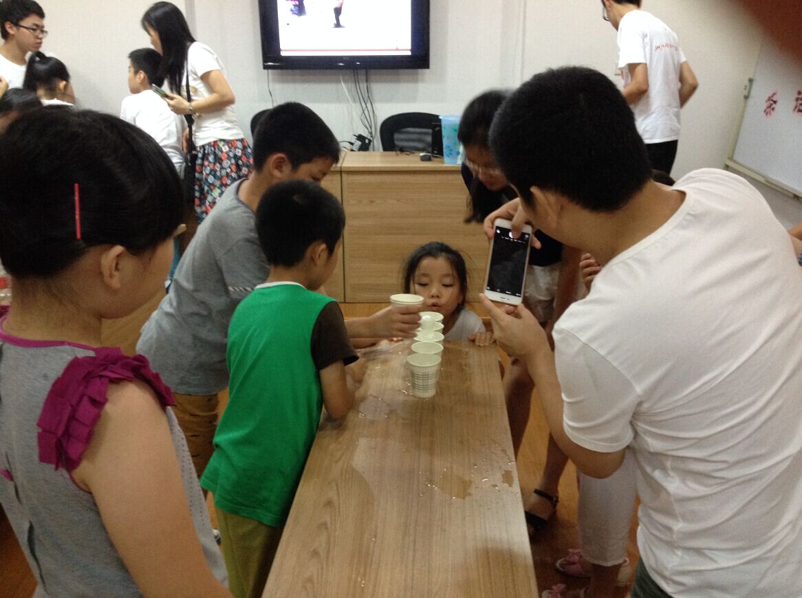 这几个游戏看似简单,其实很考验小朋友和家长之间的协作能力:只有小朋友和家长齐心协力,才能取得更好的成绩。第一个游戏,小朋友需要向家长手中的桶中投入乒乓球——看似简单的游戏,有的小朋友投球百发百中,可是有的小朋友不是力气太大就是太小,就是扔不到家长手中的桶里,家长和小朋友只能无奈的相视而笑。第二个游戏使用筷子夹乒乓球进行接力。有的小朋友十分着急,家长还没有夹住乒乓球就松开了筷子,结果乒乓球掉到了地下,只好重新开始传乒乓球。筷子表面十分光滑,想要夹住乒乓球颇有些难度;而要在半途中用筷子接力,就对小朋友和家长之间的默契程度提出了更高的挑战。