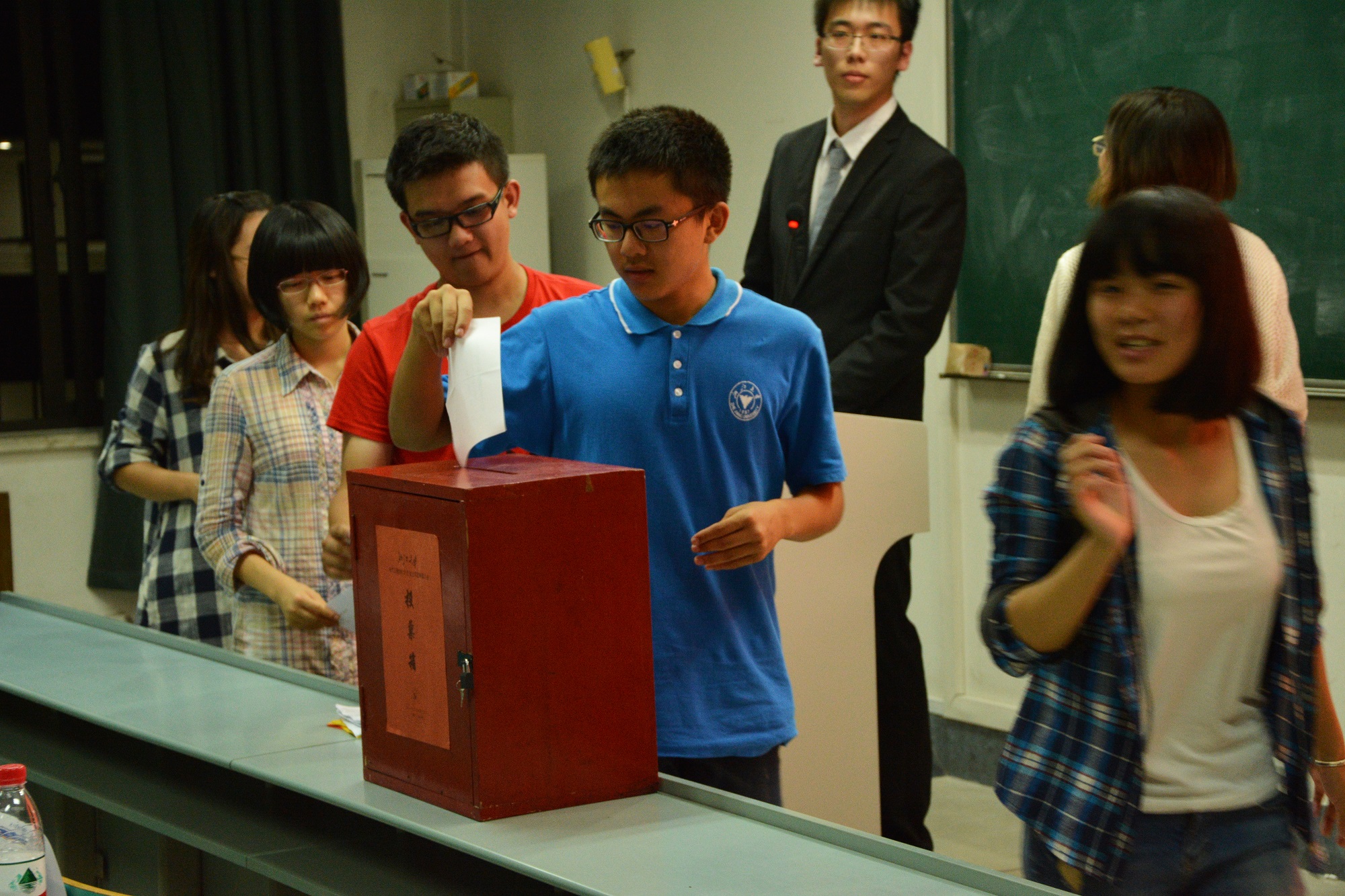 之后是庄重的投票、计票环节,评委老师、同学依次将自己宝贵的一票放入投票箱中。会议以竞选投票的方式为新一届的学生会选出具有良好的领导力、高度的责任心以及高素质的学生会副主席