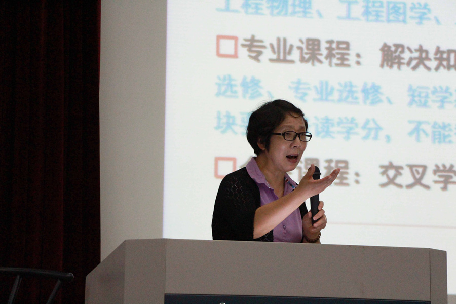 大会开始,马皓老师为同学们进行科研训练、学科竞赛、卓越计划以及免研政策的宣讲。马皓老师主要从卓越计划的提出背景和它对现今大学工科教育的重要性两方面向同学们讲解了卓越计划的具体内容,并对卓越计划在2013级的具体实施方案进行了详细的介绍。马老师在解读免研加分政策时强调“不要为了加分而加分”,而是要在争取加分的过程中提升自我能力和素质,并给同学们接下来的两年学习提供了一些建议。接下来学院本科生科长杨敏虹老师对本科生培养方案进行了详细的解读,并提醒同学们有关课程学分修读方面的注意事项。在学科竞赛和科研训练的权衡中,杨敏虹老师推荐大三的本科生从二者之中选择一项认真对待。