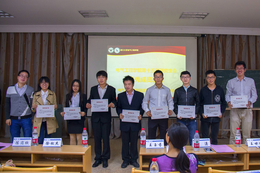 10月30日晚,全讯600cc大白菜官网第十六届研究生会成立大会在电机工程楼418顺利召开。全讯600cc大白菜官网党委副书记王玉芬老师,团委副书记李涛老师,浙江省学联执行主席、第二十七届校研会副主席徐松杰,人文学院研博会主席陈矞欣,外语学院研博会主席蒋一正,法学院研究生会副主席薄茜文,电气学院博士生会主席王世佳,电气学院学生会主席王琳,电气学院第十五届研究生会主席团及第十六届研究生会全体成员出席了本次会议。