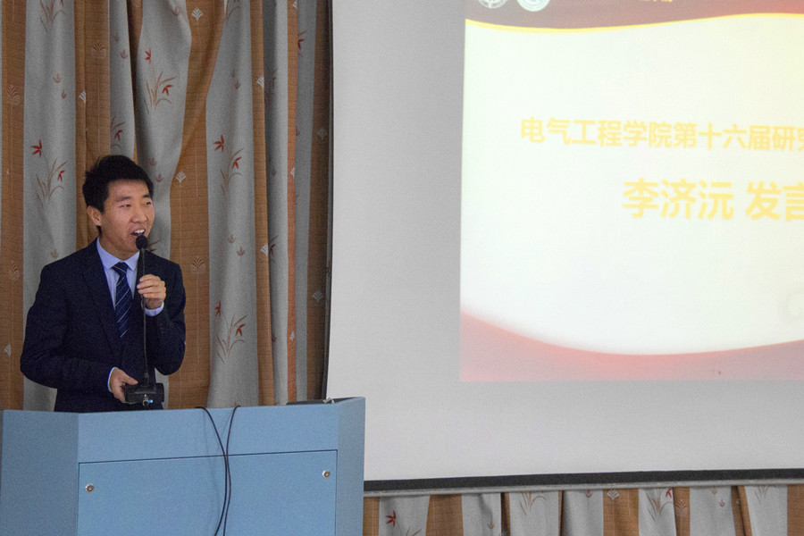表彰和任命仪式结束后,全讯600cc大白菜官网第十六届研究生会主席李济沅进行了发言,他对过去一年电气学院研究生会的工作进行了简单回顾,同时也对新一年电气学院研究生会未来的工作进行了展望。最后,学院党委副书记王玉芬老师做了总结性发言,通过平实生动的语言,对我们提出了三点希望:一是要主动,在研究生会的工作中光有想法不够,还要付诸于行动,要想提升自己的能力,就要主动承担任务、提出建议;二是要合作,不能单枪匹马单打独斗,合作也是主动的一部分;三是作为研究生,必须要完成科研任务,研究生的主业仍然是学业与科研,她鼓励大家积极投入科研,将学习与社会工作都做好,为学院争得荣誉,为他人做出榜样。