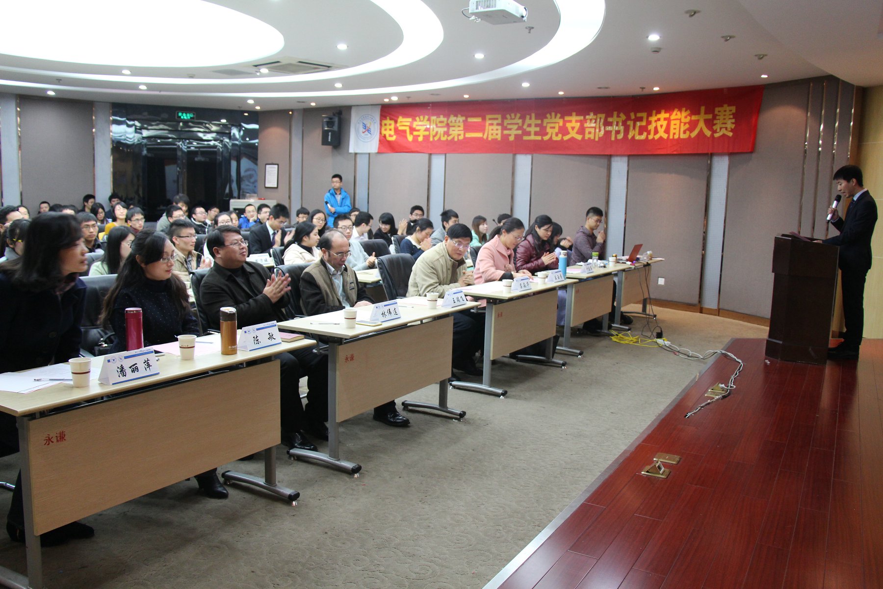 2023白菜网总站大全党委研究生工作部部长吕淼华,党委学工部副部长林伟连,党委组织部组织工作室主任叶建英,全讯600cc大白菜官网党委书记王瑞飞,学院党委副书记王玉芬,学院德育导师、电工电子基础教学中心教工党支部书记潘丽萍,学院党委委员、团委书记陈敏应邀担任本次比赛的评委。电气学院全体学生党支部书记及支部委员到场观摩学习。