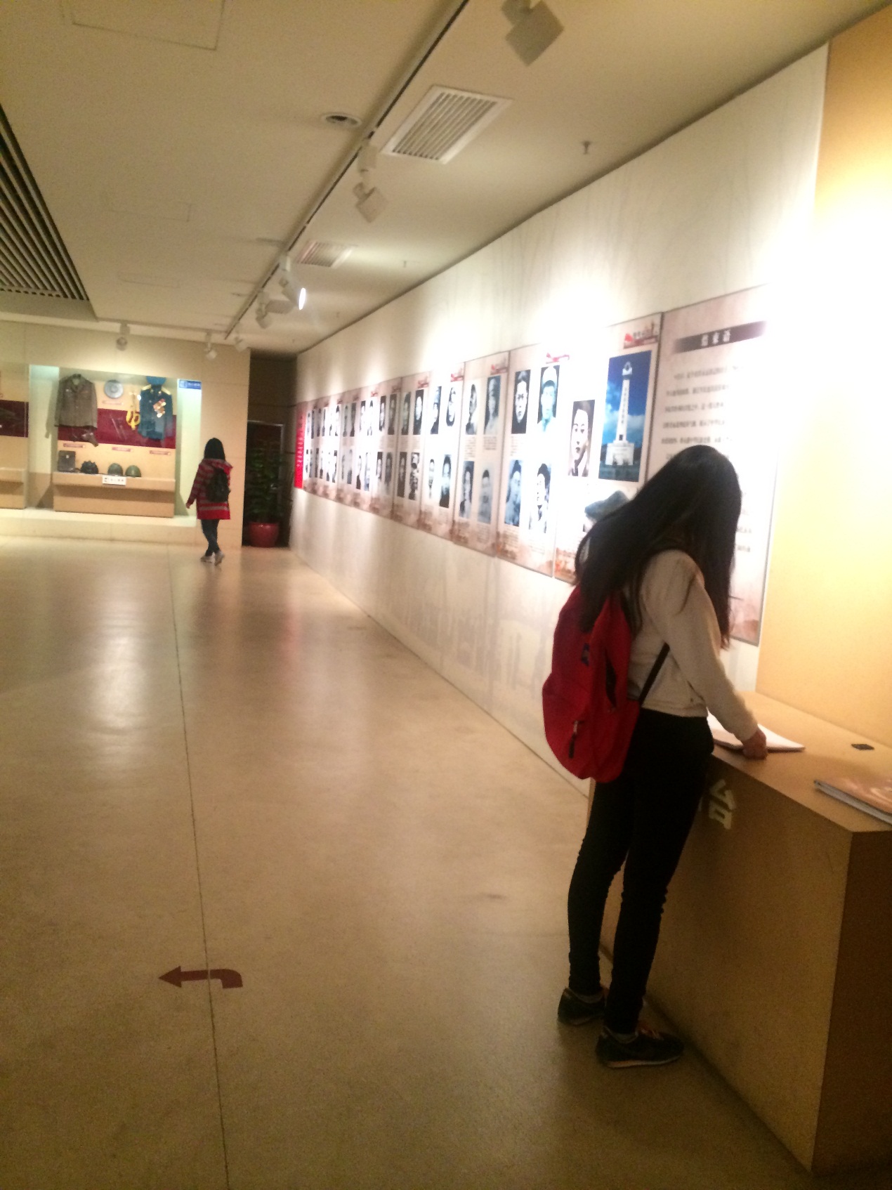 随后参观了纪念馆馆内,馆内陈列一共分为五个部分,有千余张照片、百多件文物,通过雕塑、沙盘、油画、电影、录像等向我们展现了革命烈士悲壮、动人的事迹。这是一个“英雄”淡出的时代,当铺天盖地的商品经济的潮水淹没我们视线的时候,在这一天重与英雄照面,重读近代历史,重温英雄精神,这不仅是对英烈的怀念,更是对我们自己的一次灵魂洗礼。面对一幅幅图画,一张张照片,一件件展品、一句句诗词,让大家重忆起那峥嵘岁月,心被深深地牵动着、感悟着。