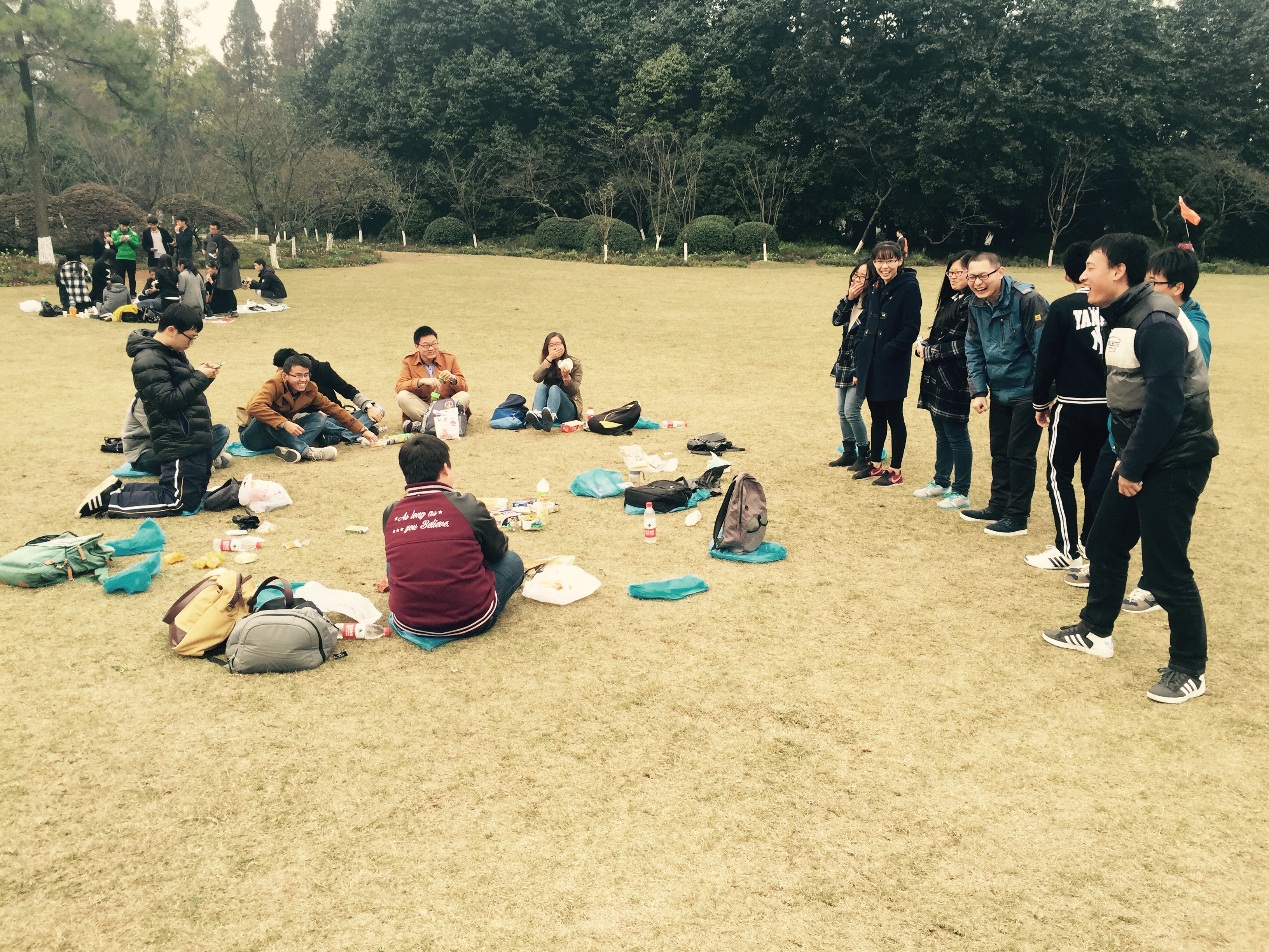 一路行军一路歌,我们19人一边往目的地前行,一边唱着《团结就是力量》,仿佛又回到了初入大学参加军训的热血时光。中午十分我们抵达了太子湾公园,并在太子湾公园的草坪上用餐休息。期间,我们在通过一些小游戏进行活跃气氛后,举行了党史知识竞赛,将同学们分为两组进行分别的答题对抗。