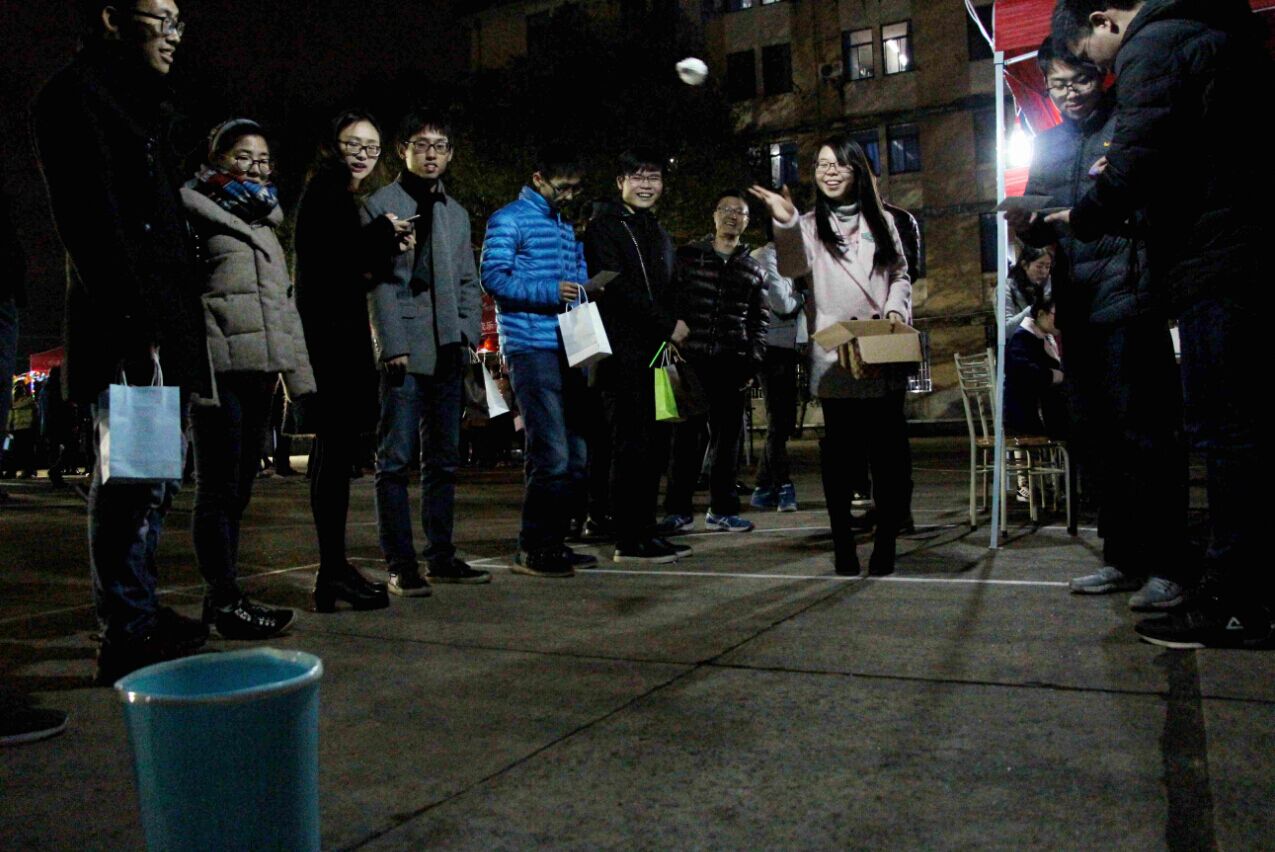 游戏分区分为九个模块,每个游戏都是组织者精挑细选的结晶。排队者跃跃欲试,比试者步步为营,围观者拍手称快,现场俨然是一片欢乐的海洋。在雾气氤氲的美食分区,食物的香气阵阵扑鼻,无论是微波炉中砰砰作响的爆米花,还是竹签上翻飞的棉花糖丝,亦或是锅中翻滚浮沉的水饺和丸子,无一不散发着浓浓的暖意,大家有秩序地排队兑换,或者和工作人员亲切聊天,好不热闹。