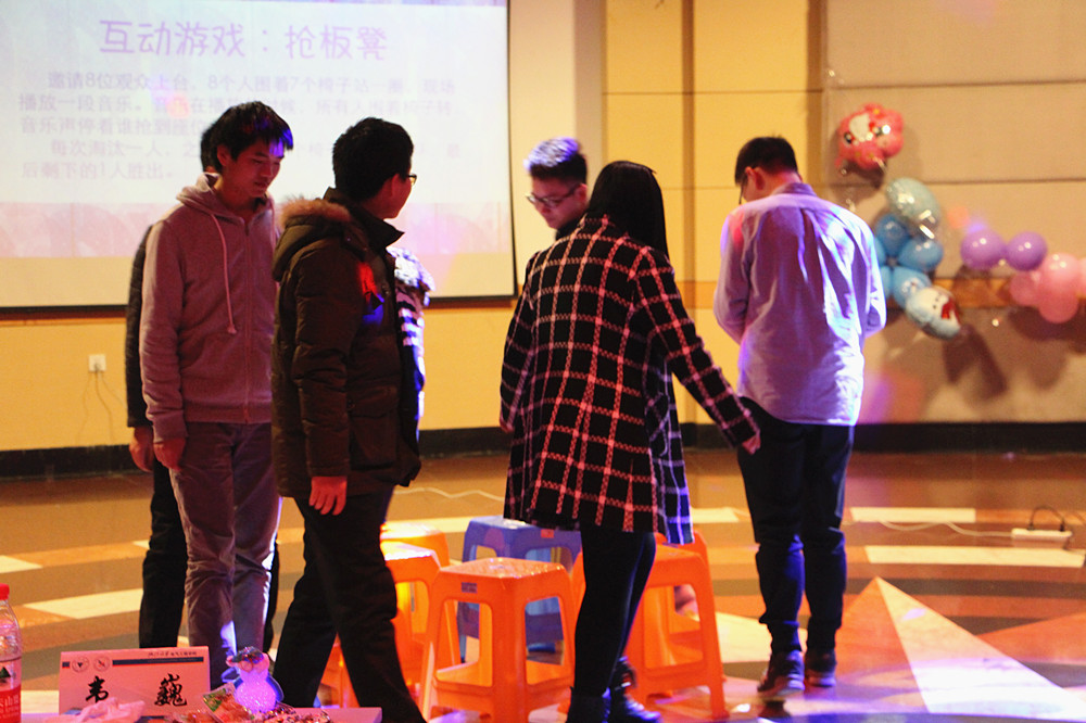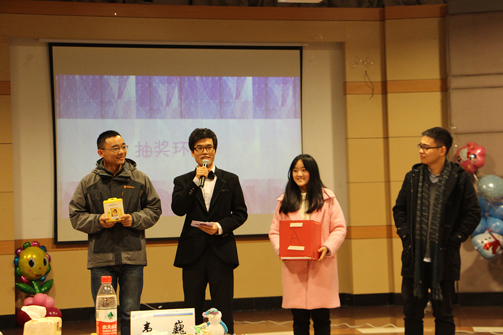 随后,各种妙趣横生的游戏和激动人心的抽奖环节更是将晚会推向了高潮。紧张激烈的抢板凳,机智烧脑的Yes Or No,最让人难忘的不是谁赢得了比赛,而是参与者潇洒离开的身影。高乐高、自拍神器、小米手环,奖品丰厚,观众热情,欢笑在互动间沸腾,青春在歌声中永恒。