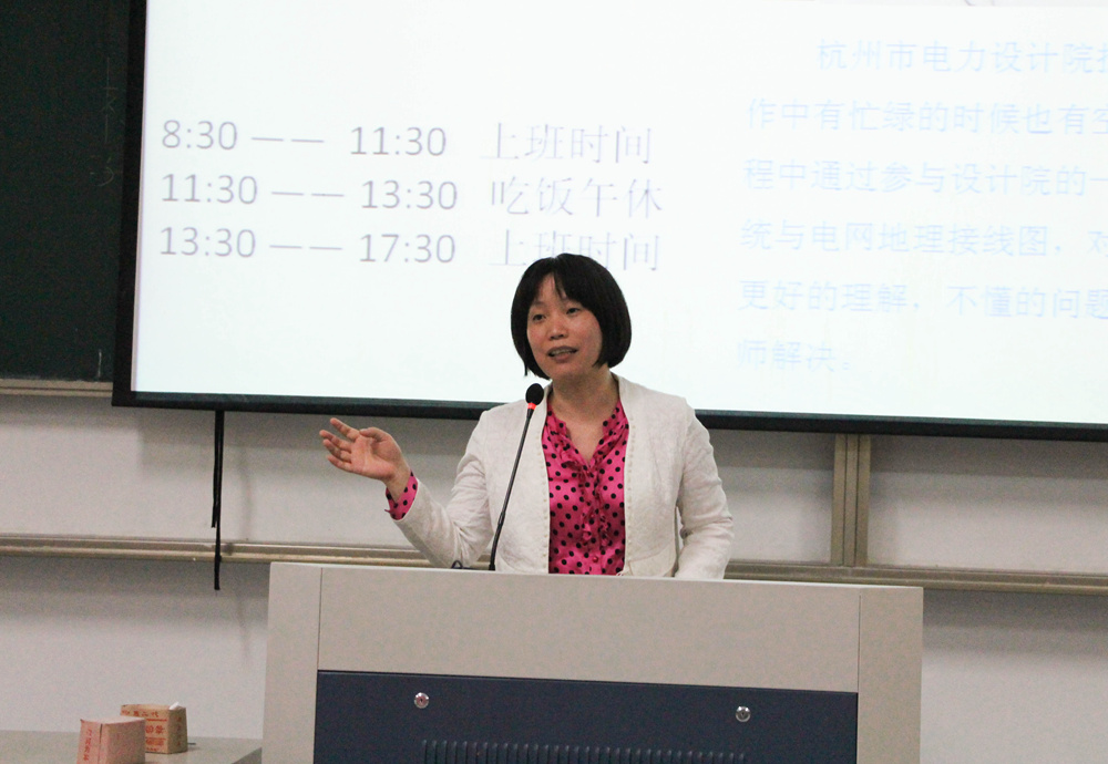 接下来电气专业的王慧芳老师及卢琴芬老师、自动化专业的许力老师分别介绍了各专业学科2013级 “卓越计划”的企业实习单位,企业对学生的要求以及各专业学科实施“卓越计划”的管理与考核办法等。对于电气专业的电自和电控方向,王慧芳老师与卢琴芬老师分别向与会同学介绍了“卓越计划”合作企业浙江省电力设计院、杭州市电力设计院、东元总合科技(杭州)、杭州士兰微电子股份有限公司等企业的具体情况,并就暑期企业实习报名细则进行了说明。许力老师首先介绍了自动化专业卓越计划的总体安排,对杭州鸿雁电器、杭州中粮包装等企业进行了一一介绍。