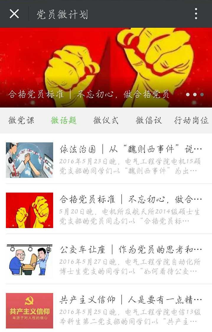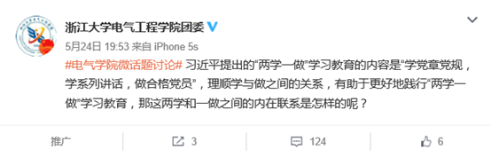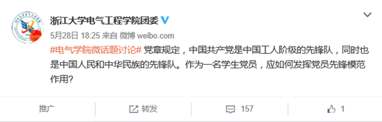 微话题活动作为全讯600cc大白菜官网党员主题教育基地“微计划”的重要内容,有效拓展了党员教育的时空,极大丰富了教育的内容与形式。微话题以促进学生党员的素质提升为根本目的,充分发挥党员主体作用,学生积极主动参与,党员自我与互相教育,以“小而精”的活动方式,在思维碰撞中发出浙大学子自己的声音。活动如火如荼的开展,逐渐培养党员教育的浓厚氛围,也将不断促进党员思想素质的提升。