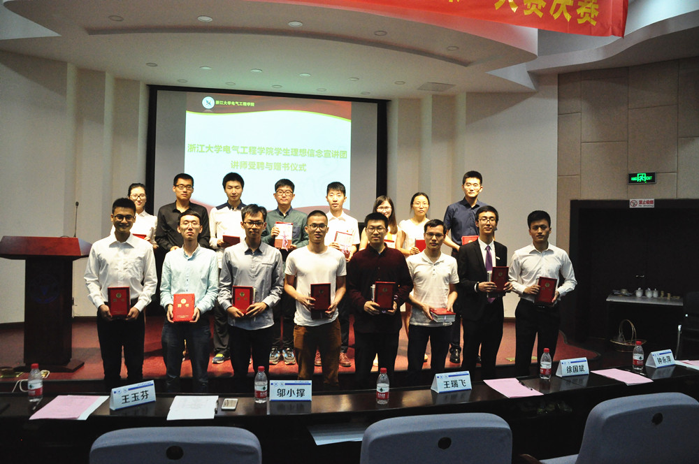 颁奖仪式结束后进行了2023白菜网总站大全思想政治教育特色示范基地授牌仪式和电气学院学生理想信念宣讲团成员受聘仪式。