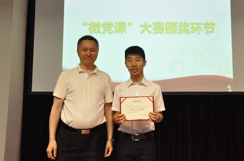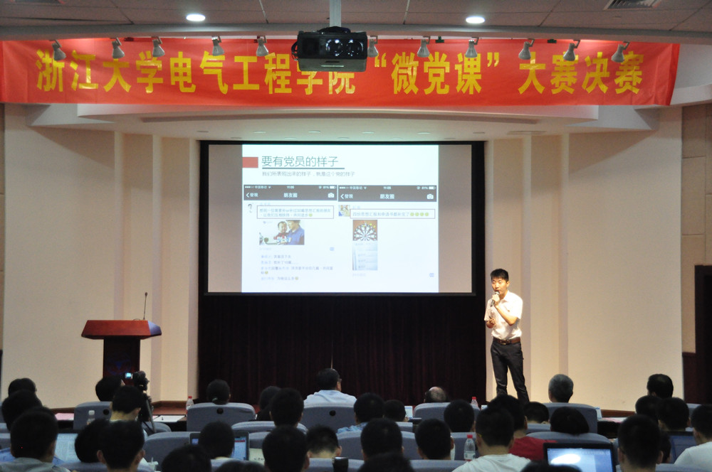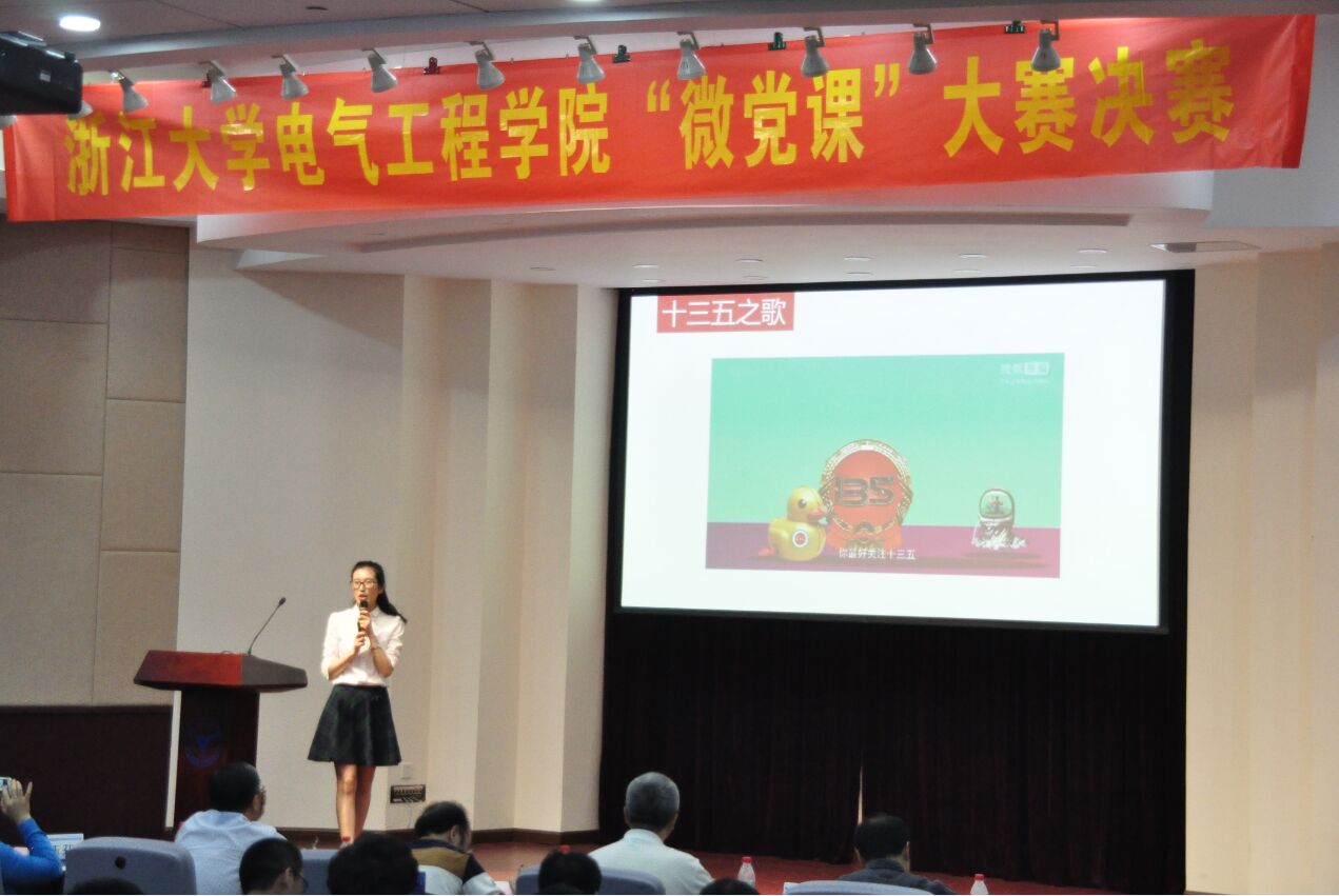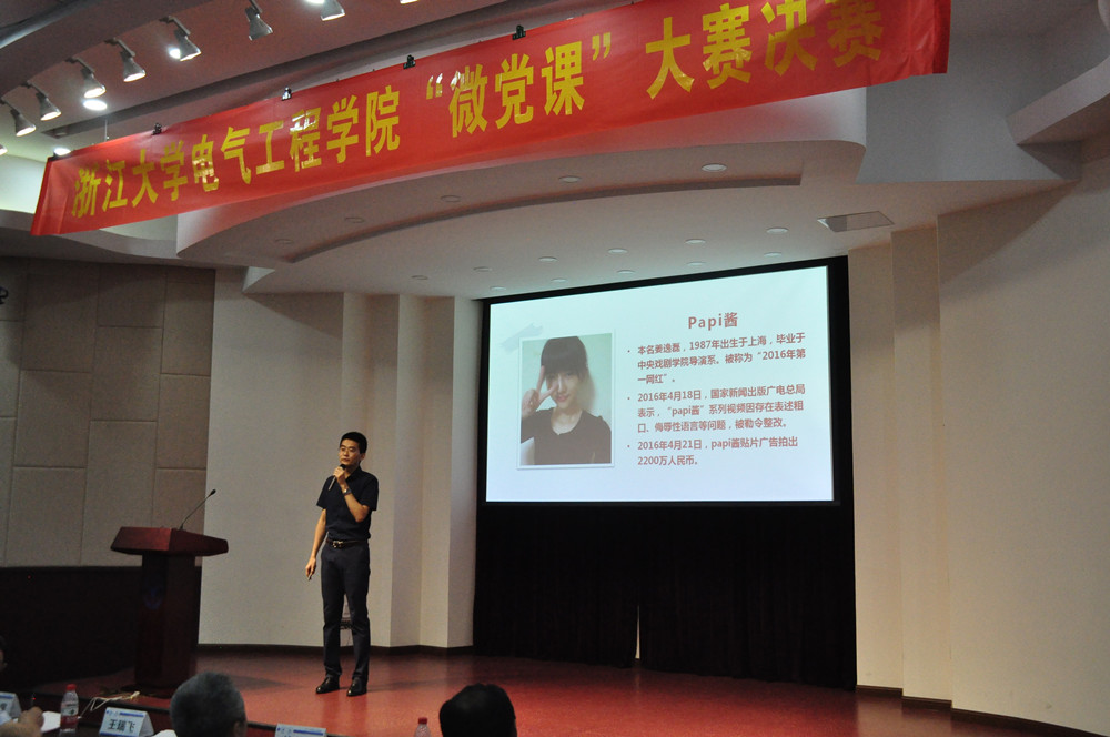 为深入学习贯彻习近平总书记系列重要讲话精神,推动全面从严治党向基层延伸,围绕“学党章党规、学系列讲话,做合格党员”学习教育,结合“先锋学子”全员培训计划,倡导广大学生党员认真学习、善于思考、勤于实践,鼓励学生党员走上党员教育的微课堂,6月14日晚,全讯600cc大白菜官网在邵逸夫科技馆117报告厅举行 “微党课”大赛决赛。党委学工部部长邬小撑老师、电气学院党委书记王瑞飞老师、研工部副部长徐国斌老师、国际联合学院学生事务部部长王玉芬老师、数学学院党委副书记蔡荃老师、党委组织部党校办公室钟永萍老师、电气学院党委副书记陈敏老师担任本次比赛的评委。