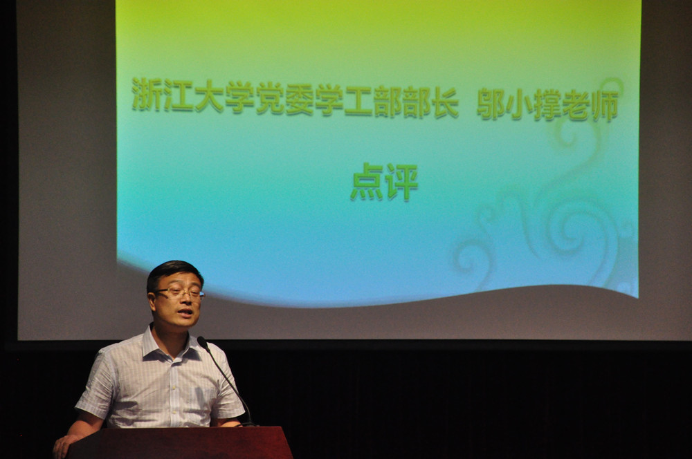 选手们比赛结束后,党委学工部部长邬小撑老师对十位参赛选手做了细致点评。他对“电气学院党建水平之一流”赞不绝口,对“各位选手的渊博、丰富、深入和激情”褒奖有加,对“电气学院后续党建工作再上一层楼”充满信心。