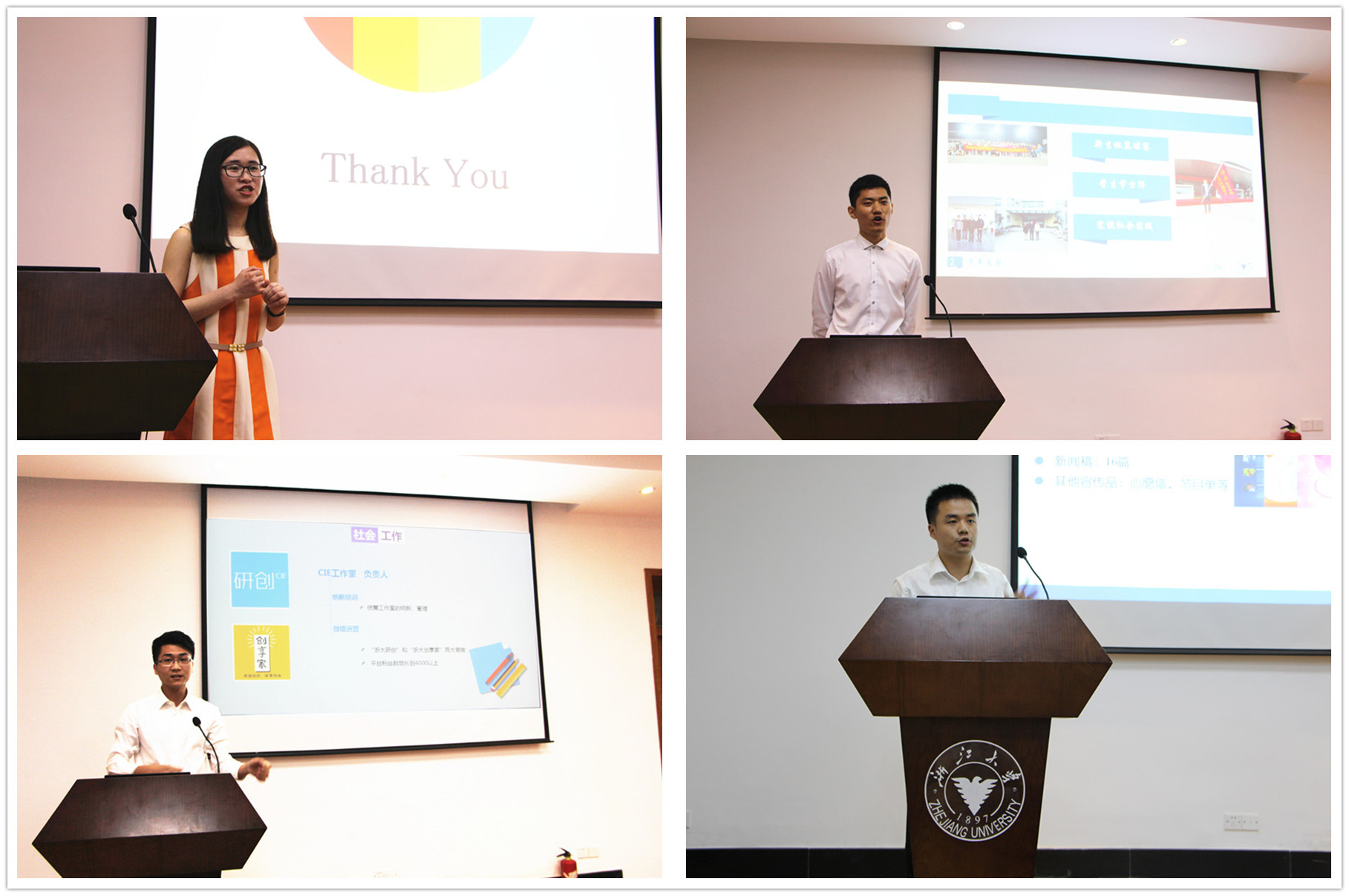 在宣布会议开始并介绍来宾之后,第十六届研究生会主席李济沅做了题为《在奉献中绽放青春风采,在服务中打造一流组织》的第十六届研究生会工作报告。他从人才培养、学术互动、文体活动、对外交流四个方面对研会过去一整年的工作进行了总结。他也对第十七届研究生会从加强研会内部建设、深入研究生实验室生活、推进研会微信平台建设、开拓学生权益服务平台四个方面提出了自己的期望与建议。