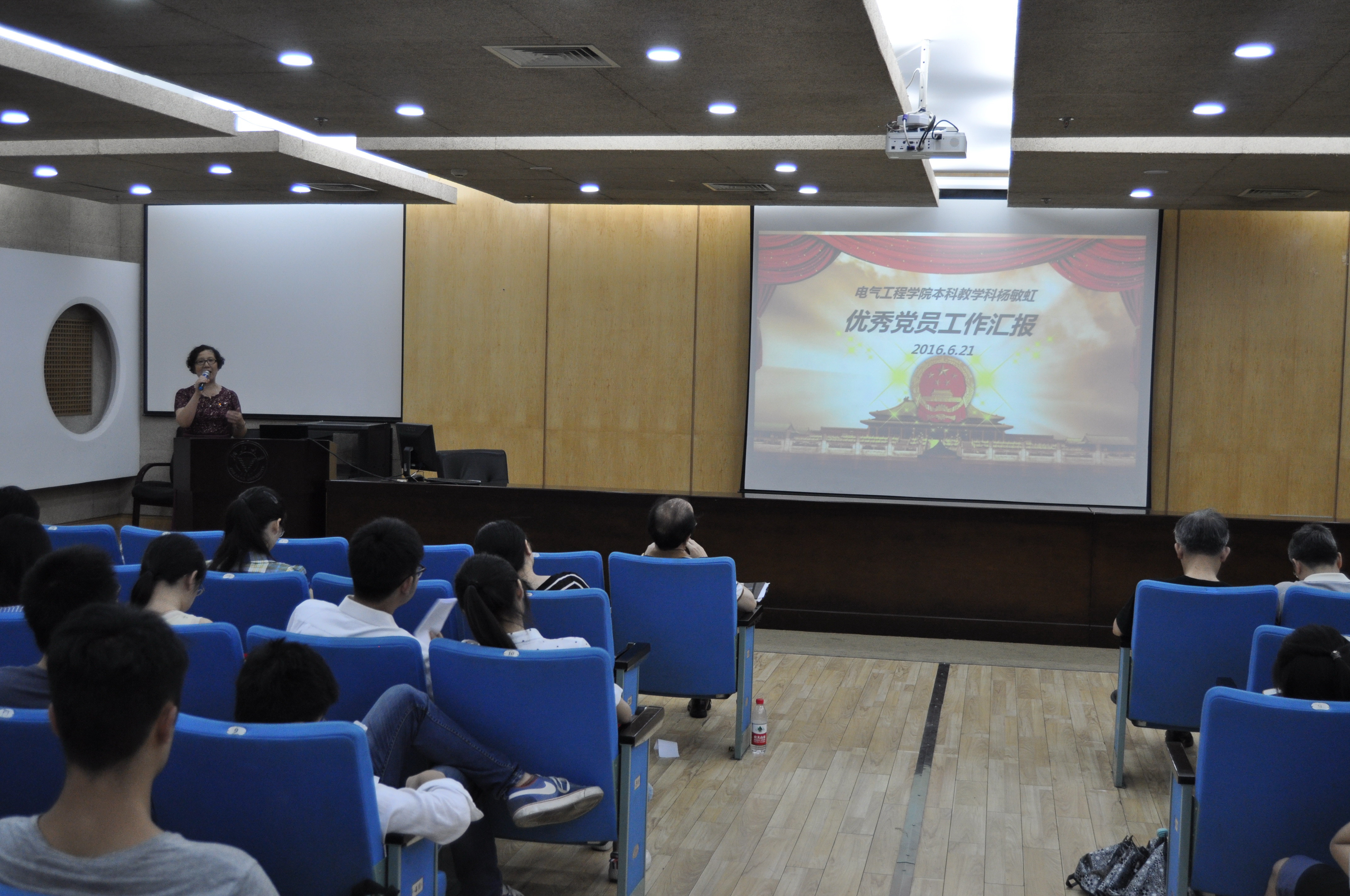 接下来,先进党支部和优秀共产党员的代表进行了经验交流和风采展示,分享党建工作经验。应用电子学系教工党支部将支部建设与学科建设相结合,定期举办PE学术沙龙特色活动,影响广泛,获誉颇丰;电气工程及其自动化2012级本科生第三党支部规范制度化管理,积极举办理论学习会,不断增强支部凝聚力;优秀共产党员教师代表杨敏虹老师始终将师生利益放在首位,全身心投入学院本科教学管理工作,成果显著;优秀共产党员学生代表李济沅同学脚踏实地,坚持不懈,从小事做起,追求卓越,充分发挥先锋模范作用。他们的先进事迹感染、激励了与会的党员们,让大家获益匪浅。