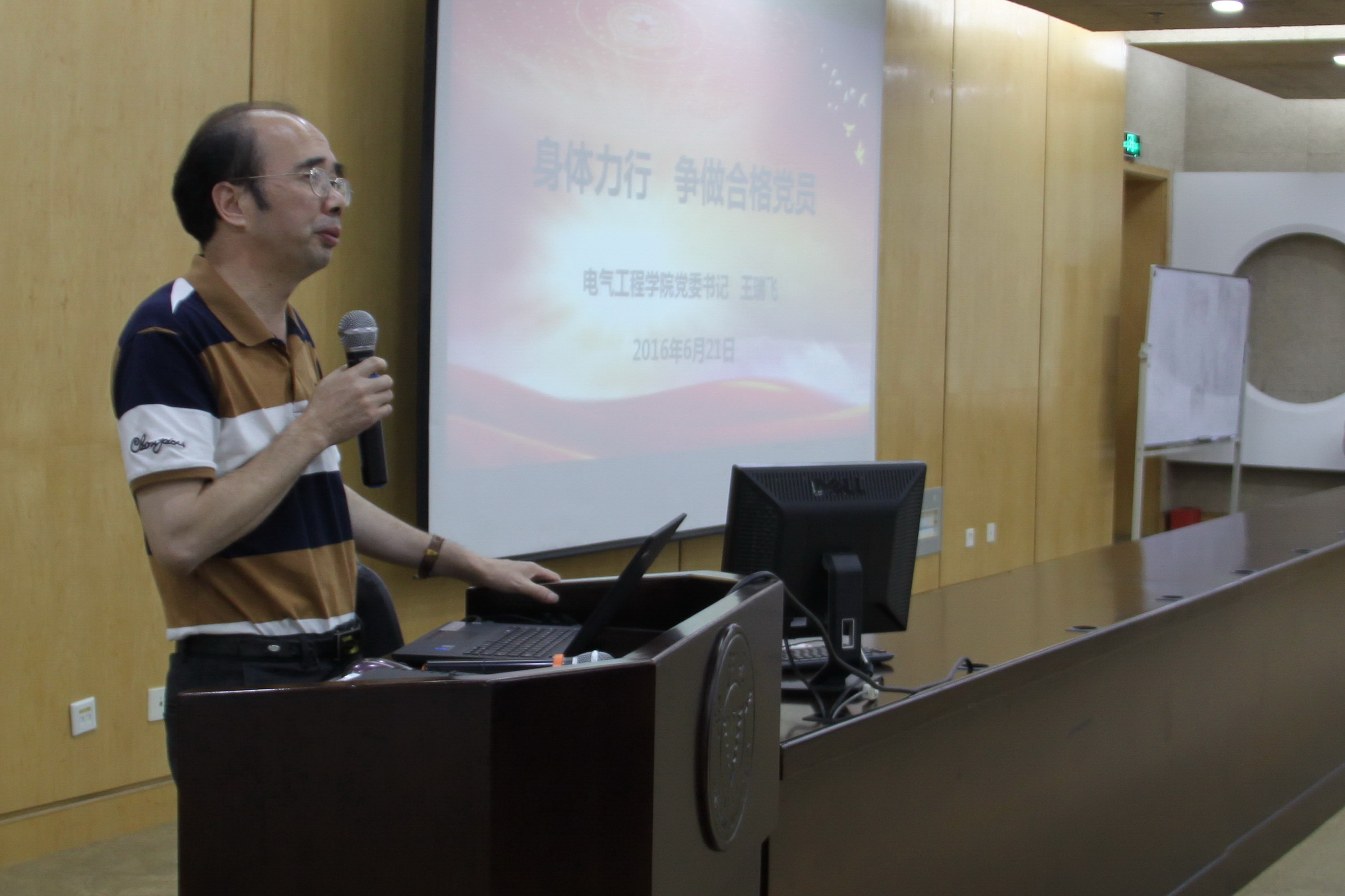 随后,学院党委书记王瑞飞给党员们带来了主题为“身体力行,争做合格党员”的党课。他表示,“两学一做”学习教育是加强党的思想政治建设的一项重大部署,是协调推进“四个全面”战略布局特别是推动全面从严治党向基层延伸的有力抓手。他认为,学习党章是全体党员的基本功,这个功课要经常做。党的意识是党员的根本归属,党章就是规定了党的性质、纲领、路线、方针政策等核心问题,作为一个党员,就是要认可这些内容,入心入脑,将其作为行为规范。他认为,习近平总书记系列重要讲话是当代中国最鲜活的马克思主义,深刻回答了新的历史条件下党和国家事业发展的一系列重大理论和实践问题,进一步丰富发展了党的理论和路线方针政策,是指导我们党在目前阶段如何按照党章来落实工作,对党员、干部提出了更具时代特点的新要求。他强调,党员们应该增强政治意识、大局意识、核心意识、看齐意识,正确认识大局,服从大局,维护大局,坚决听从党的决策部署,在党中央的领导下为国家事业发展努力奋斗。他还列举了党的历届领导人强调从自身做起、身体力行的讲话内容,要求党员们要摆好开放、阳光、积极的心态,要发扬从自己做起、从现在做起的精神,既富于崇高理想,又始终脚踏实地,诚诚恳恳地为祖国和人民做好每一件有意义的事情。他希望,获得荣誉的团体和个人能继续发挥先锋模范作用,而全体党员应以先进为榜样,为早日实现建成世界一流大学的“浙大梦”、为实现中华民族伟大复兴的“中国梦”而努力奋斗.