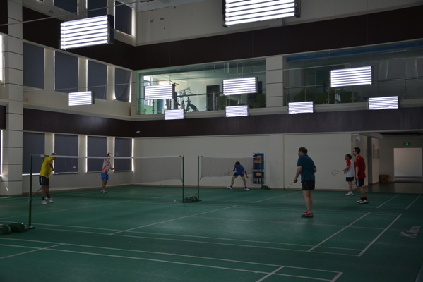 七月的杭城已经进入了炎夏的高温模式,羽毛球场地虽然空间较大,有窗帘阻挡了烈日的直射,但是密闭的空间仍犹如一个大蒸笼。或许是热爱羽毛球运动的伙伴们早就习惯了球场的闷热,一进球场就俨然不顾高温,开始捉对厮杀,切磋球技。两场比拼下来,一个个挥汗如雨,三片场地的球友们不约而同选择休息片刻,来到过道吹吹凉(re)风,对视着双方满头的大汗,一下子你我之间的距离就消失了,过道里扬起一片喧闹的笑声。