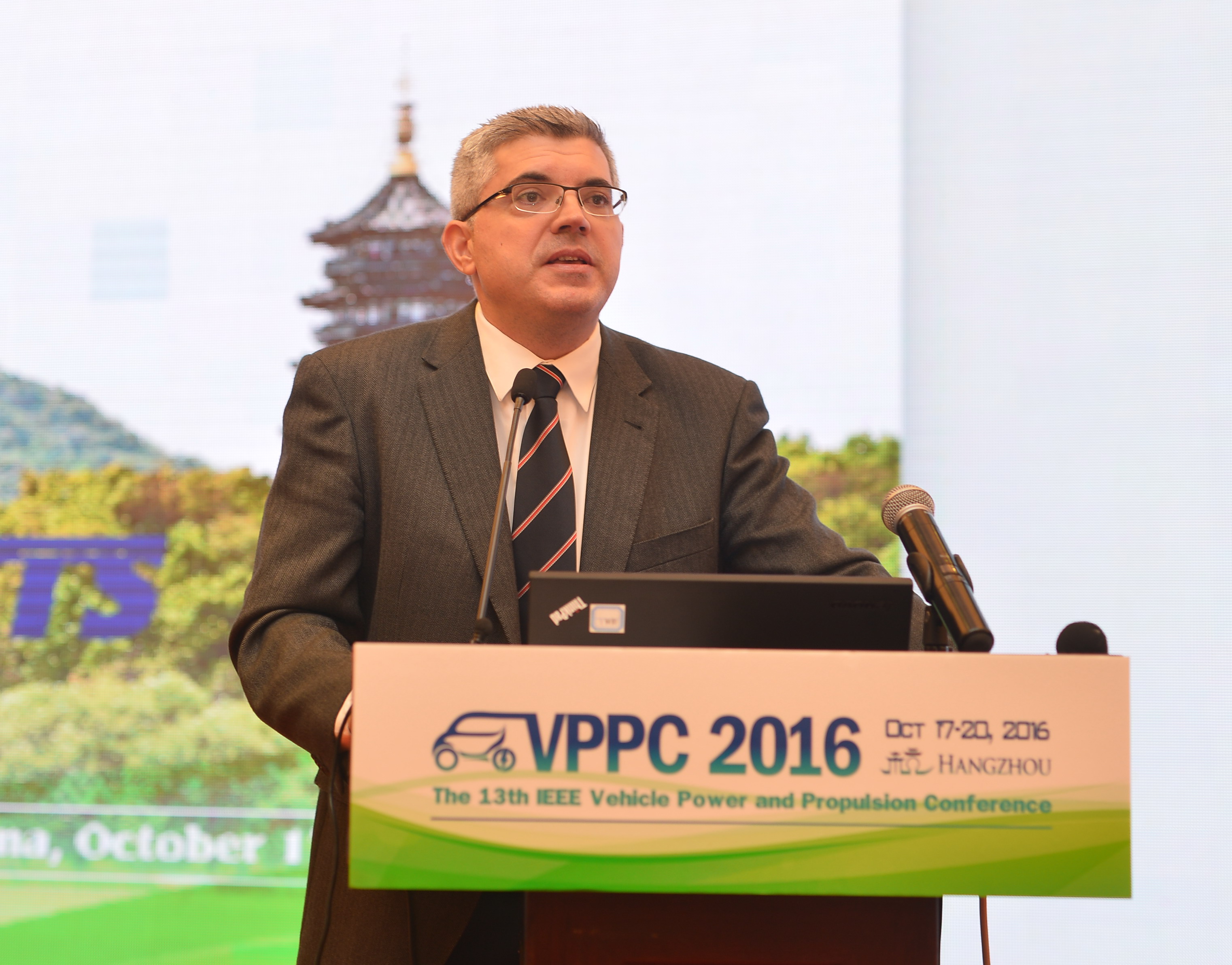 IEEE VTS主席Javier Gozalvez教授、IEEE VTS VPPC技术委员会主席Alain Bouscayrol教授以及IEEE VTS副主席Loic Boulon教授出席开幕式并致辞。他们分别介绍了VTS、VPPC的基本情况以及IEEE VTS 2017年Motor Vehicles Challenge主题,强调了VTS及VPPC对于相关领域学术科研支撑、青年人才教育储备所起的重要作用。他们衷心希望VPPC2016在最美杭州擦出最亮的思维火花。