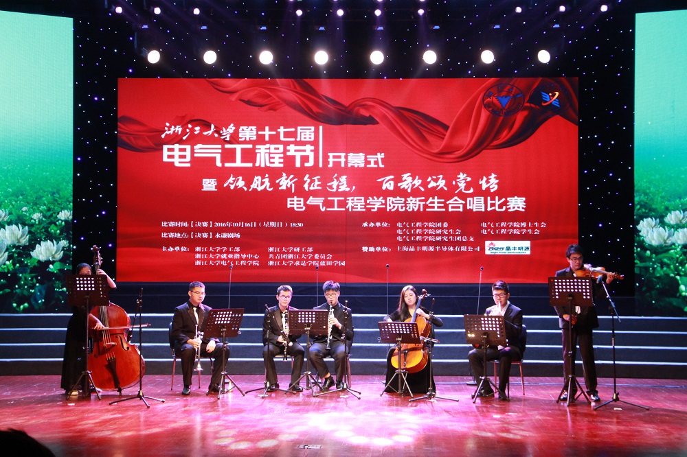 开幕式活动伊始,陈敏老师首先为活动致辞,她介绍了电气工程节悠久的历史与合唱比赛的重要纽带作用。之后,陈谷纲老师致辞,他对打造学生品牌活动提出了富有创新的建议,并表示建党95周年使开幕式具有更深远的意义,相信本届电气工程节会一如既往的绽放光彩。紧接着,刘洁茜女士对晶丰明源公司进行了介绍,并预祝比赛圆满成功。最后,韦巍老师通过三句话表达对电气工程节的肯定与期许,并宣布第十七届电气工程节开幕。