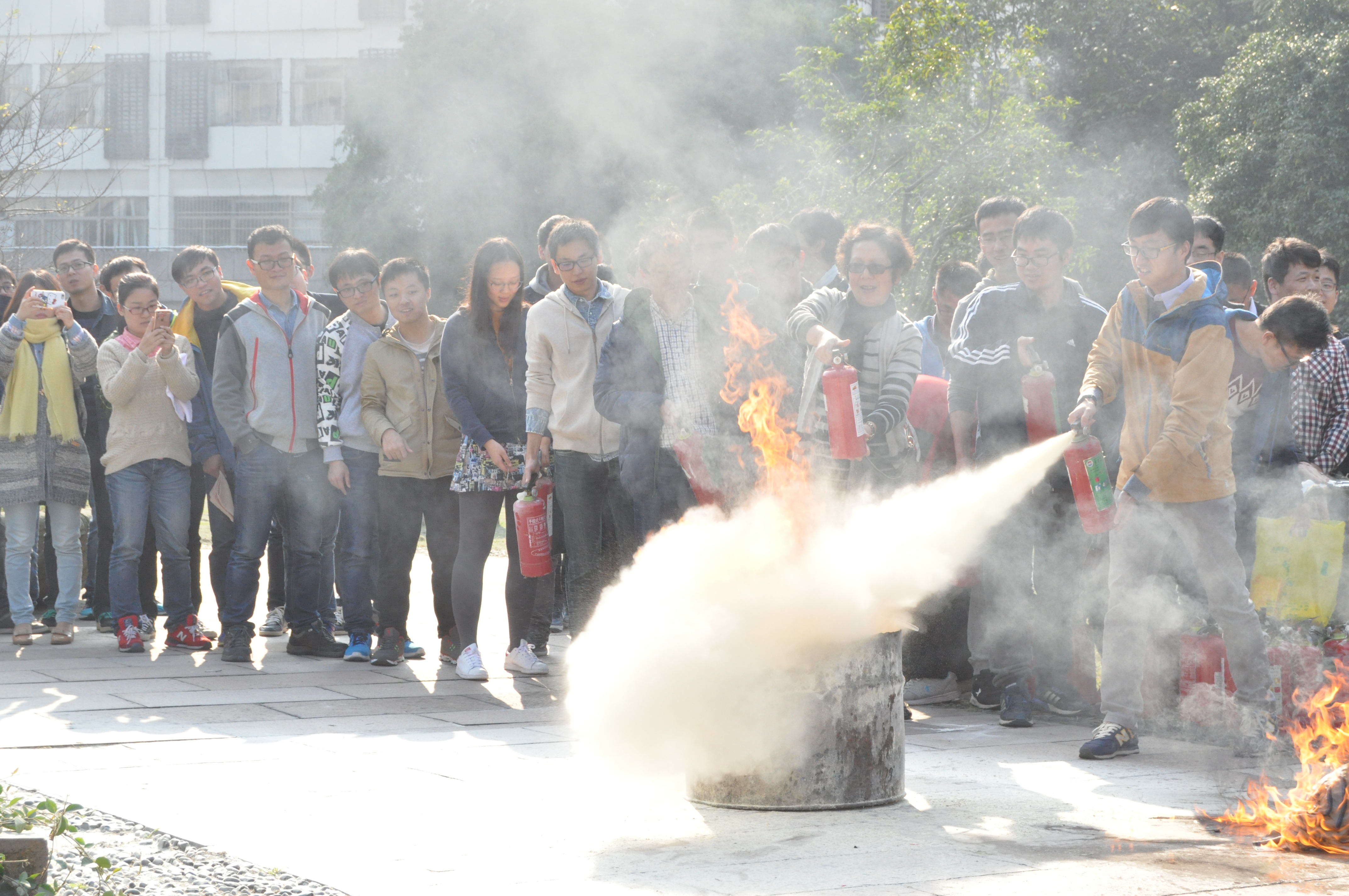 此后,苏杰在安全区域向参加演练的师生现场演示了灭火器的使用方法,并让在场的师生实际操作。