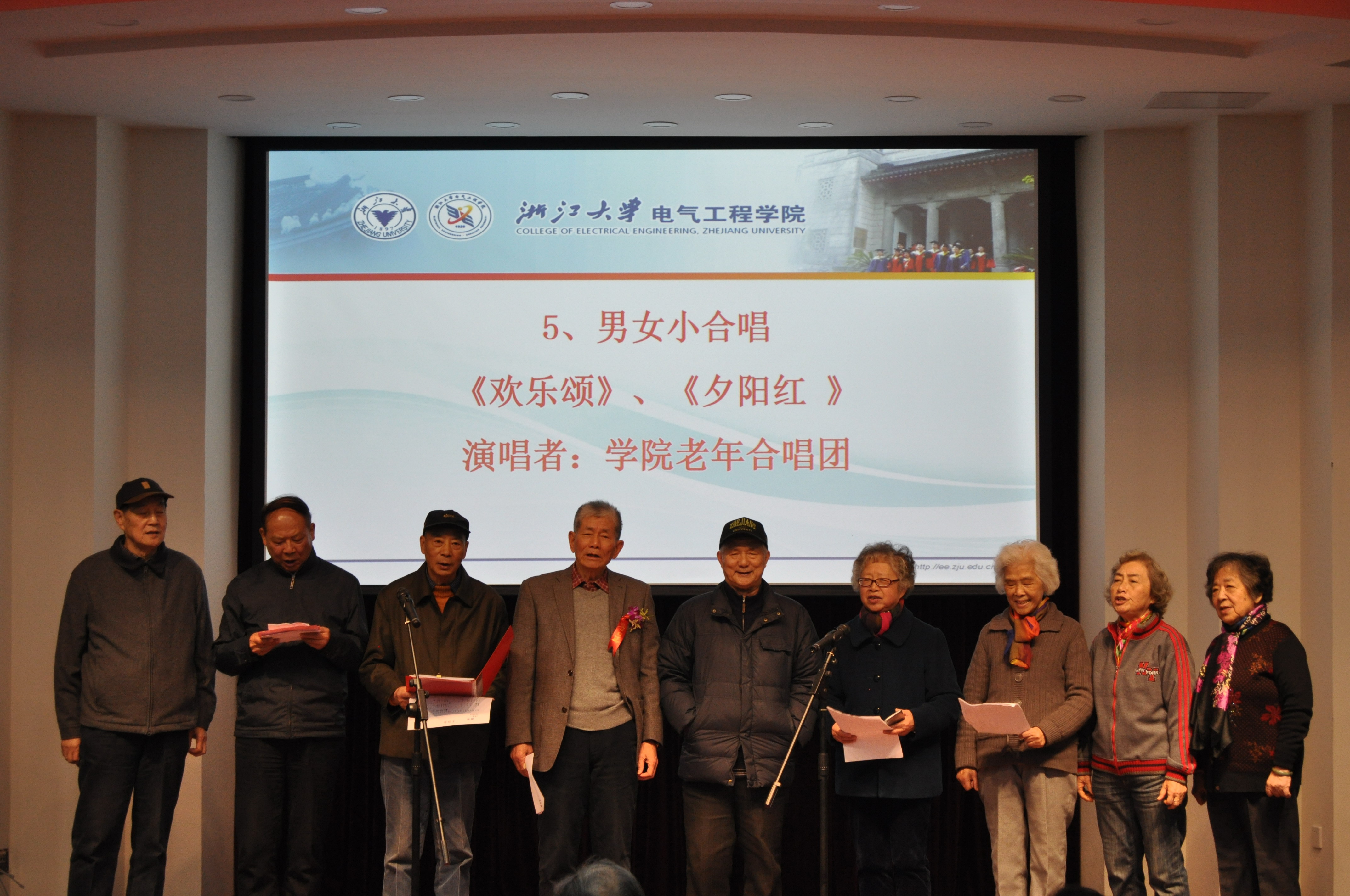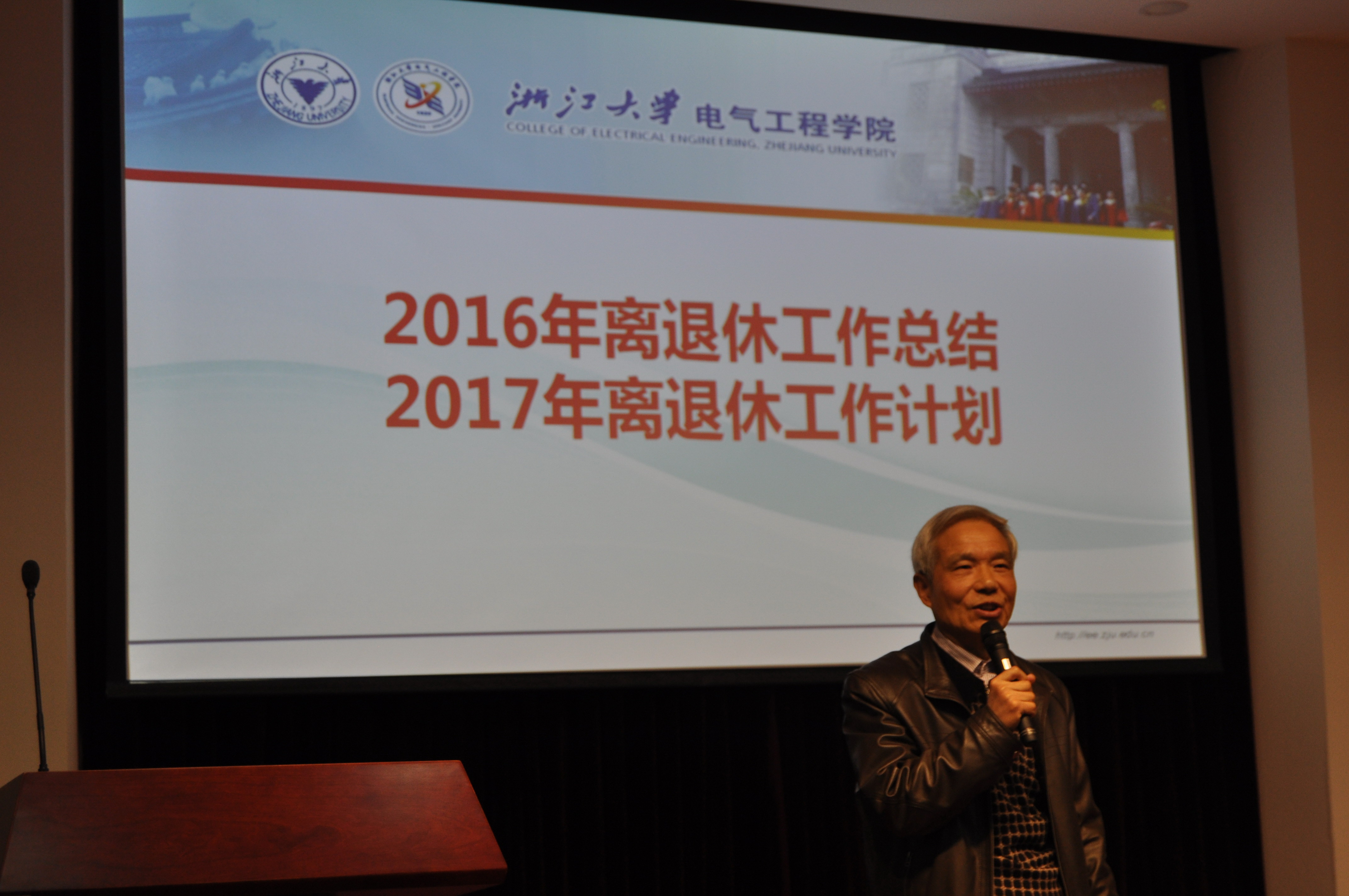 2016年12月6日,全讯600cc大白菜官网在玉泉校区邵逸夫科学馆举行2016年离退休工作研讨会暨八十华诞教工集体贺寿庆典活动。中国工程院院士汪槱生、学院党委副书记陈敏、退休党总支书记吴长春、各教工党支部书记以及学院离退休教职工140余人参会,活动由学院综合服务办主任杨敏虹与退休第一党支部书记吴国忠共同主持。