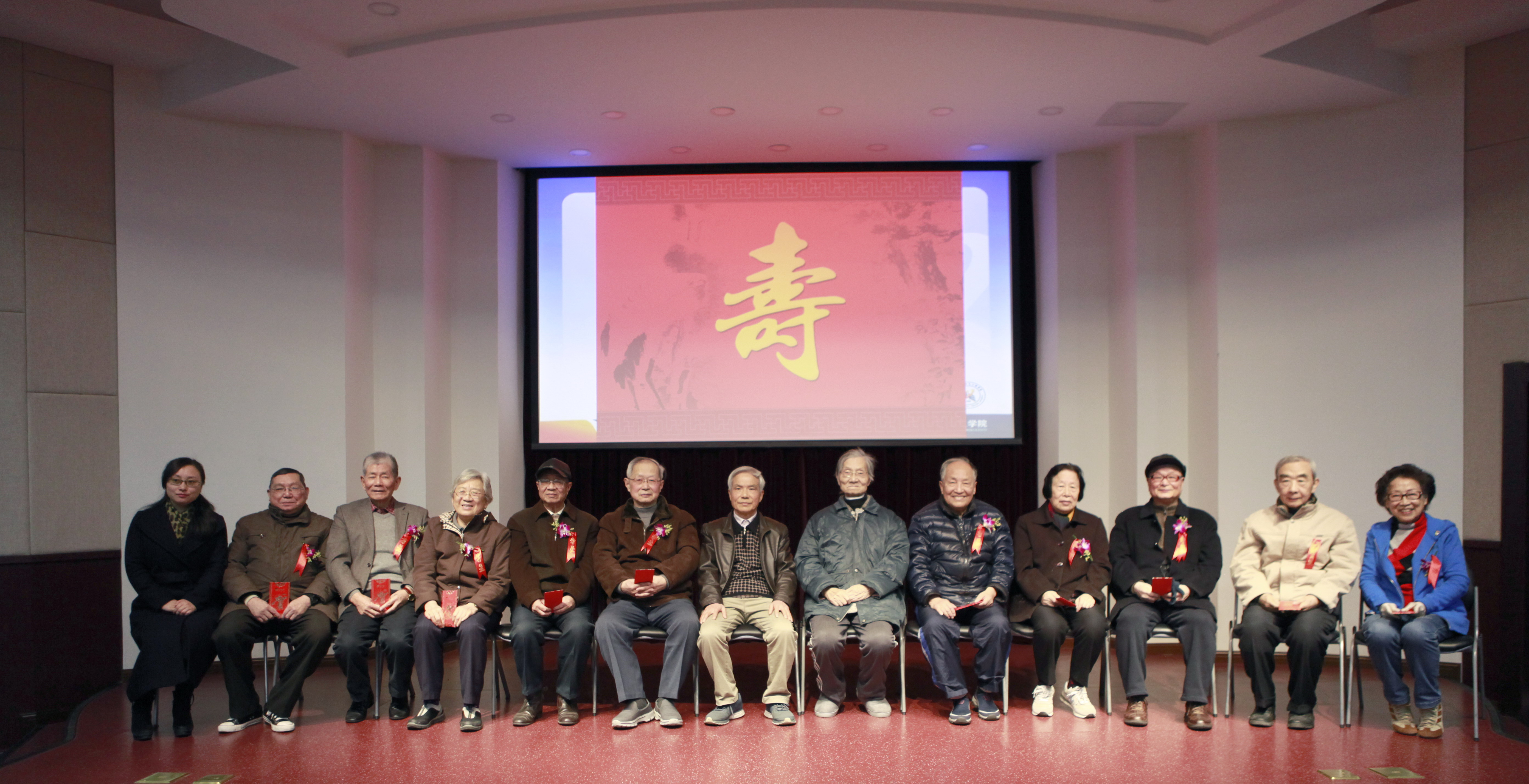 离退休工作研讨会结束后,学院举办了八十华诞教工集体贺寿庆典活动。今年,学院迎来了十五位八十大寿的耄耋老人,他们分别是蒋霞雯、谢中奎、陈希矛、王谷音、沈明珠、邹伯敏、马鹤亭、杨源远、吴国膺、方伟、阮元珍、汪荣源、姚仲兴、金方勤、孙士乾。