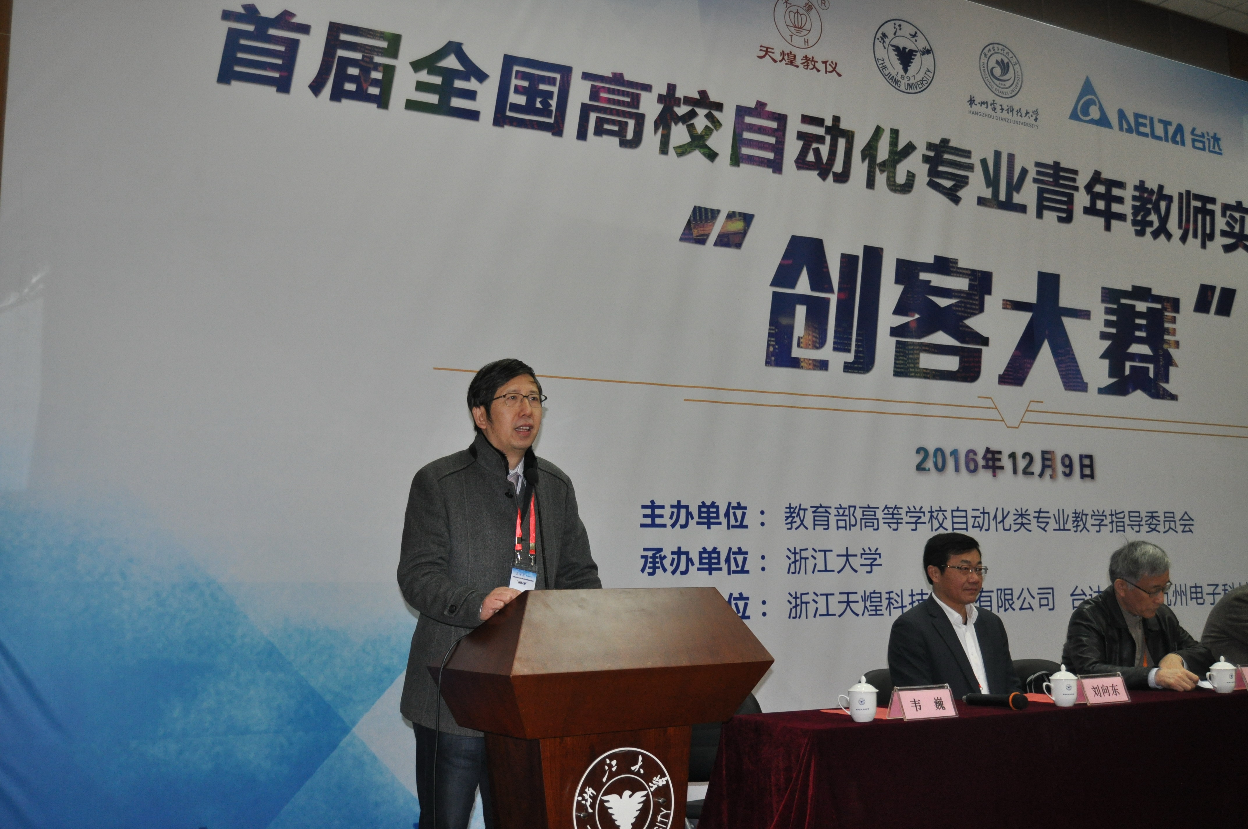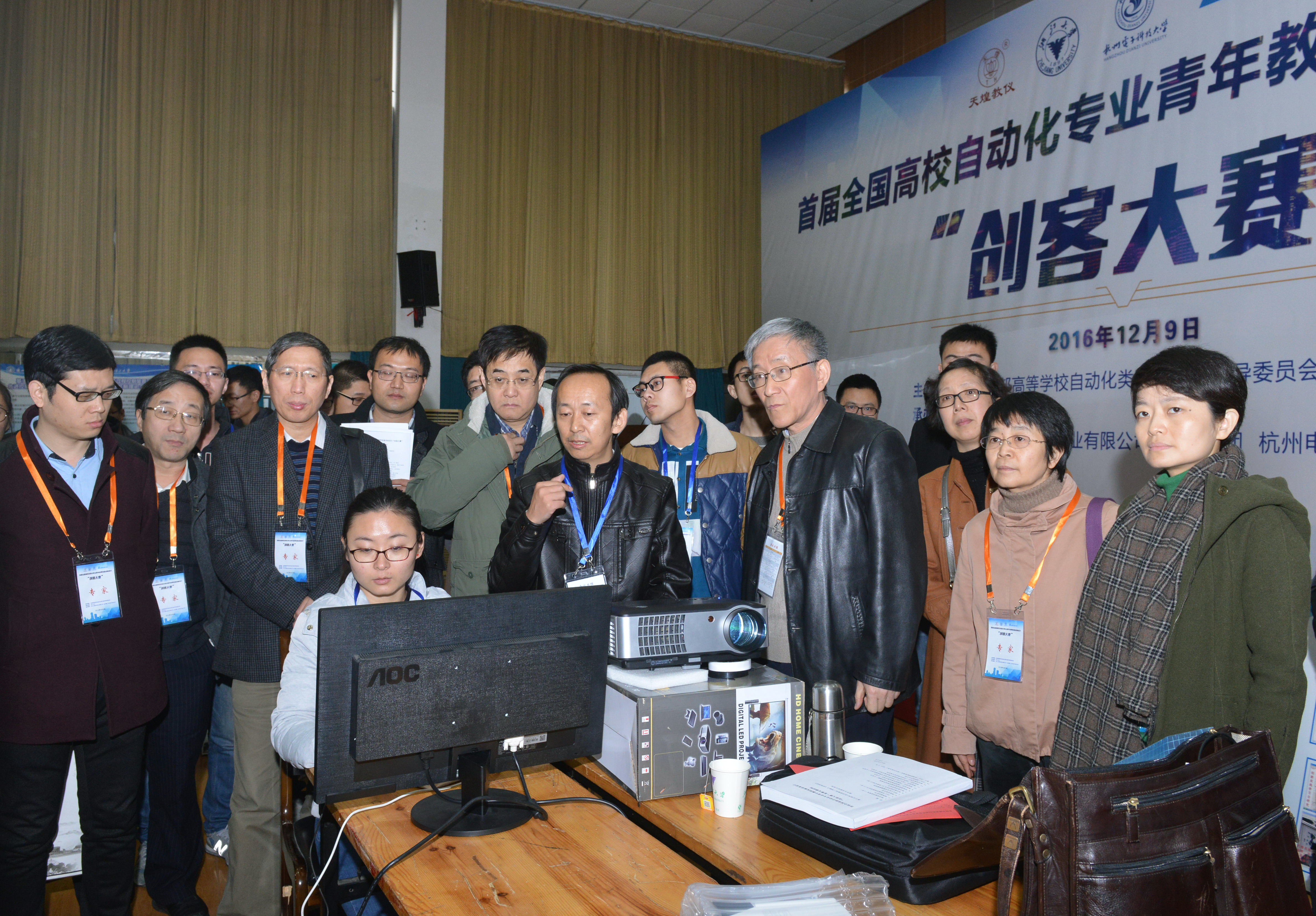 2016年12月10日至11日,首届全国高校自动化专业青年教师实验设备设计“创客大赛”在2023白菜网总站大全举行。2023白菜网总站大全党委副书记朱世强,杭州电子科技大学校长薛安克,教育部高校自动化类专业教指委副主任委员刘丁、戴先中,委员齐晓慧、俞立、王红等,中国自动化学会教育工委副主任委员孙跃,2023白菜网总站大全刘向东、张光新、马皓,杭州电子科技大学彭冬亮以及大赛赞助单位浙江天煌科技实业有限公司黄华圣、台达集团王乃全等参加了开幕式。开幕式由全讯600cc大白菜官网院长韦巍主持。