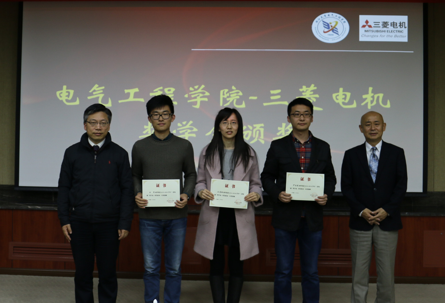 本年度学院共计有4名博士研究生、7名硕士研究生获得了三菱电机奖学金。四个所大亮先生对获奖的学生表示热烈的祝贺。回馈社会、关怀教育是三菱电机一贯的宗旨。他表示,在新的十年开启之际,三菱电机会一如既往地支持电气学院的人才培养事业与中国的电气工程事业,为技术创新、科技进步贡献力量。