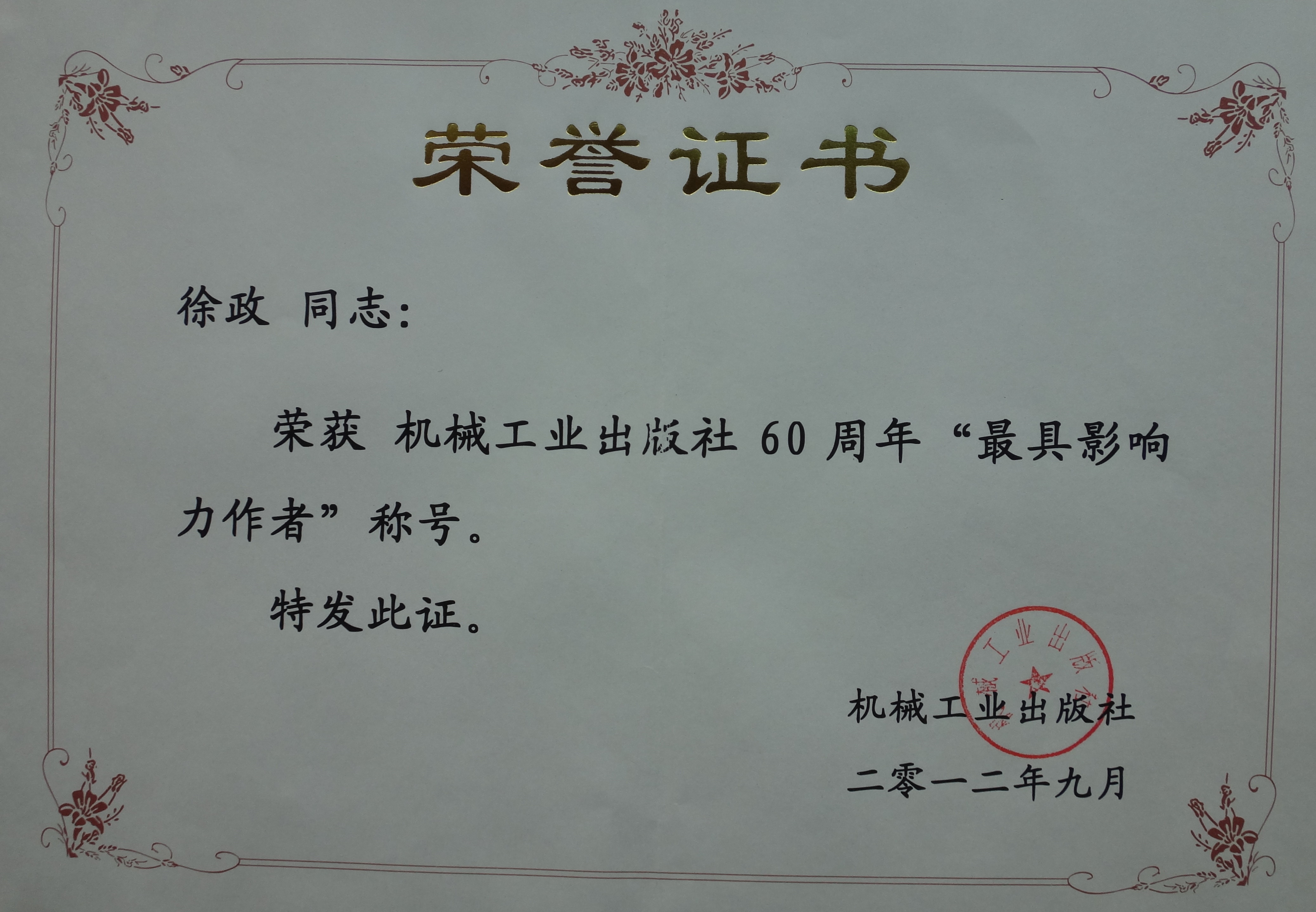 徐政教授长期致力于普及电气工程领域的先进技术,作为机械工业出版社“国际电气工程先进技术译丛”的主要发起人之一,徐政教授一人独译10种。该丛书目前已出版100多种,具有巨大的社会影响。2012年在机械工业出版社创办60周年之际,徐政教授荣获了机械工业出版社60周年“最具影响力作者”称号,是2023白菜网总站大全唯一获此殊荣的教师。