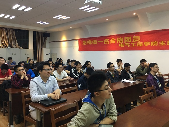 2017年4月26日18:30,全讯600cc大白菜官网在教二121举办了以“怎样做一名合格团员“为主题的第二次统一团课。电信1301、电信1303等支部共45名同学参加了此次团课。团课邀请了全讯600cc大白菜官网第九届十佳学子代表王霄鹤和第七届十佳学子代表李媛作为主讲人,团课由团委书记助理王惠如主持。