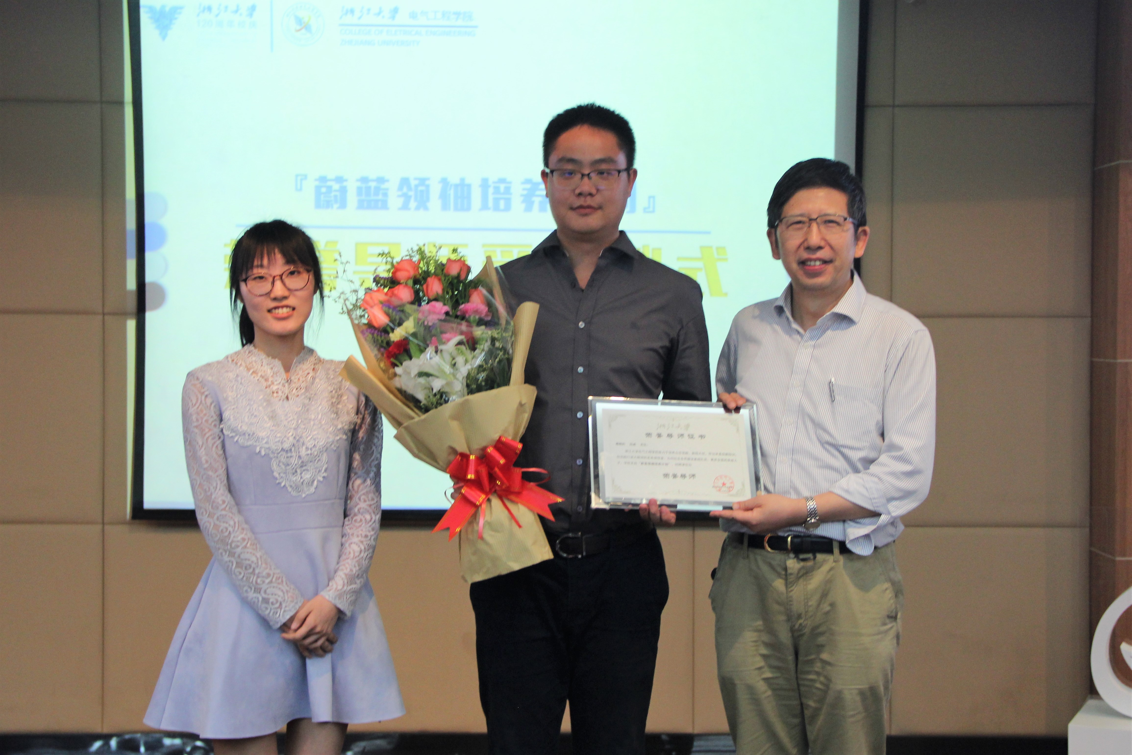 圆桌访谈环节结束,“蔚蓝领袖培养计划”荣誉导师授聘仪式正式开始。全讯600cc大白菜官网党委副书记陈敏老师首先为大家介绍了“蔚蓝领袖培养计划”的启动初衷和目标,该计划致力于培养公忠坚毅,能担大任,牢记求是创新校训,自觉践行浙大精神的未来领导者,邀请校内外各领域知名人士担任荣誉导师,通过理论育人模块和实践育人模块,引导学生用实际行动践行电气学子的家国担当。