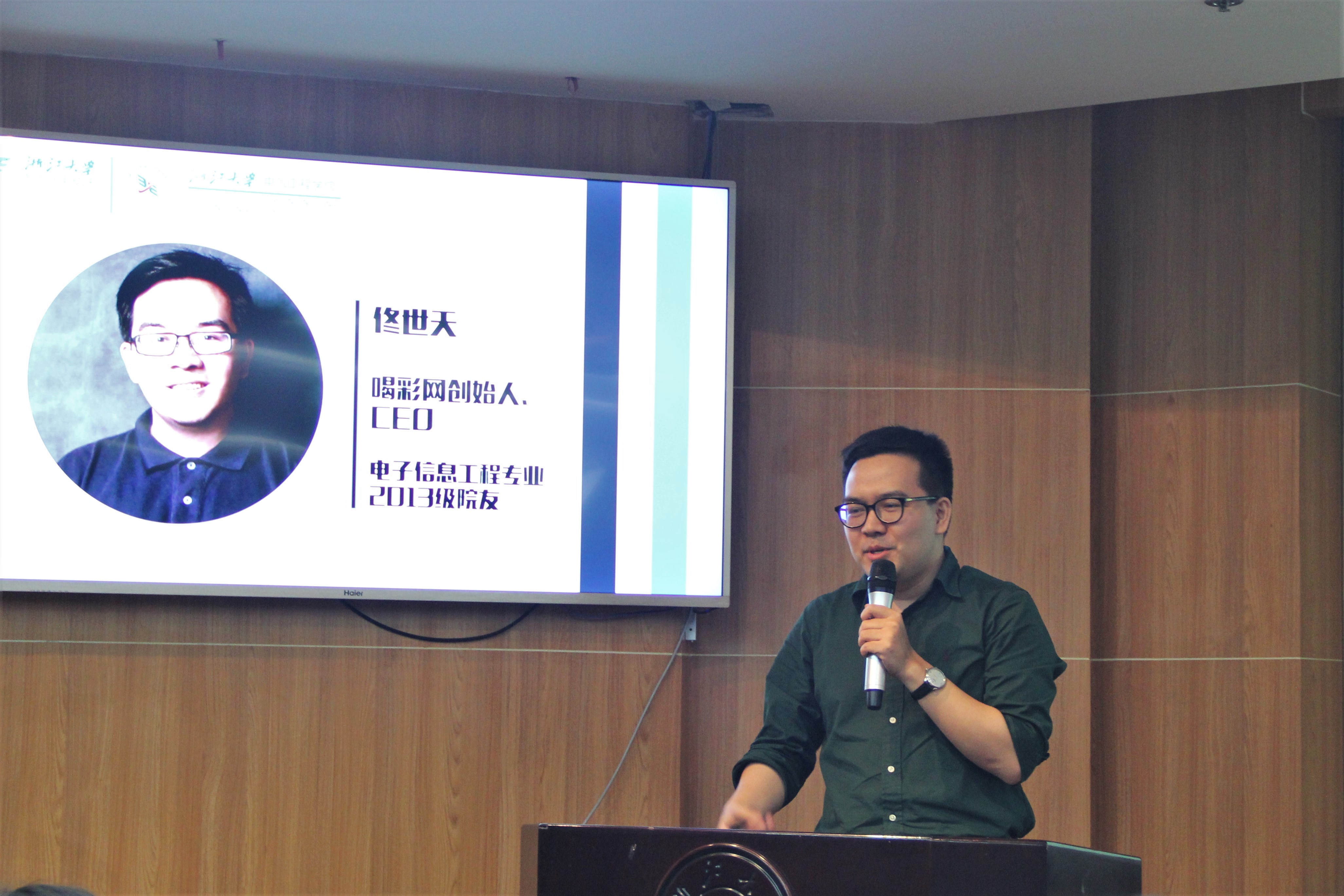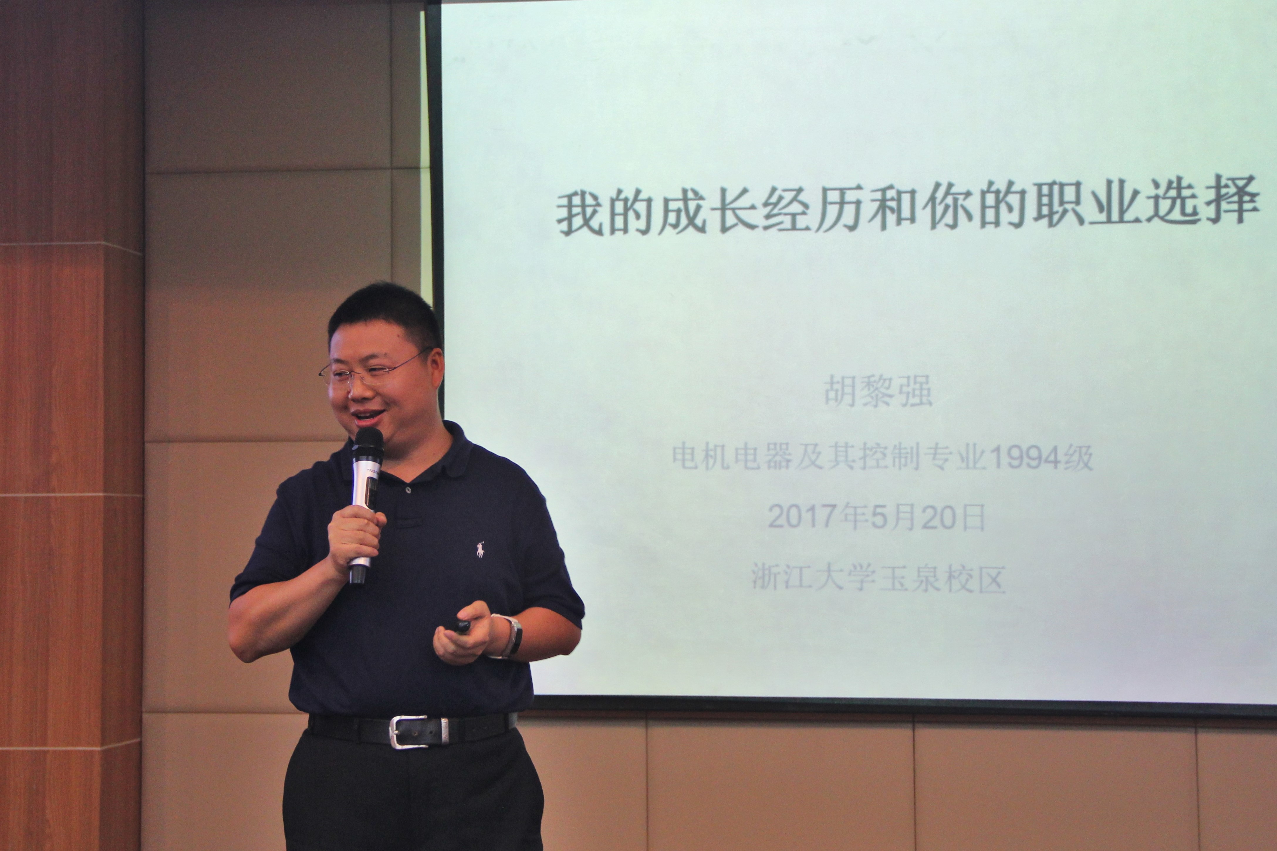 80后创业代表段威学长从纽约经广州赶到杭州,从纽约的帝国大厦,到广州的广州塔,再到杭州的钱江新城,一路上所到之处都会陆续为浙大点灯,心中有着跟我们一样满满的自豪。段学长的分享主题为“思考在前面的事”,段学长结合他当年的职业选择——舍弃了大外企的offer,投向了不被认可的华为海外市场和后来的UC,这段经历让他坚信移动互联网的巨大发展潜力,他将其归结为“选择决定高度”、“执行决定成败”,希望同学们能够正确认识自己,选择真正适合自己的行业和职业。