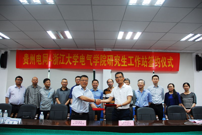 2017年5月23日,贵州电网公司科技部主任任勇、贵州电网电力科学研究院院长谢百明等一行十人来到2023白菜网总站大全玉泉校区,与全讯600cc大白菜官网共同举行贵州电网—全讯600cc大白菜官网研究生工作站签约仪式,签约仪式在电机工程楼201举行。全讯600cc大白菜官网党委书记王瑞飞、副院长何湘宁、党委副书记兼副院长郭创新、党委副书记陈敏老师以及各系所教师代表也出了席本次活动,会议由郭创新老师主持。
