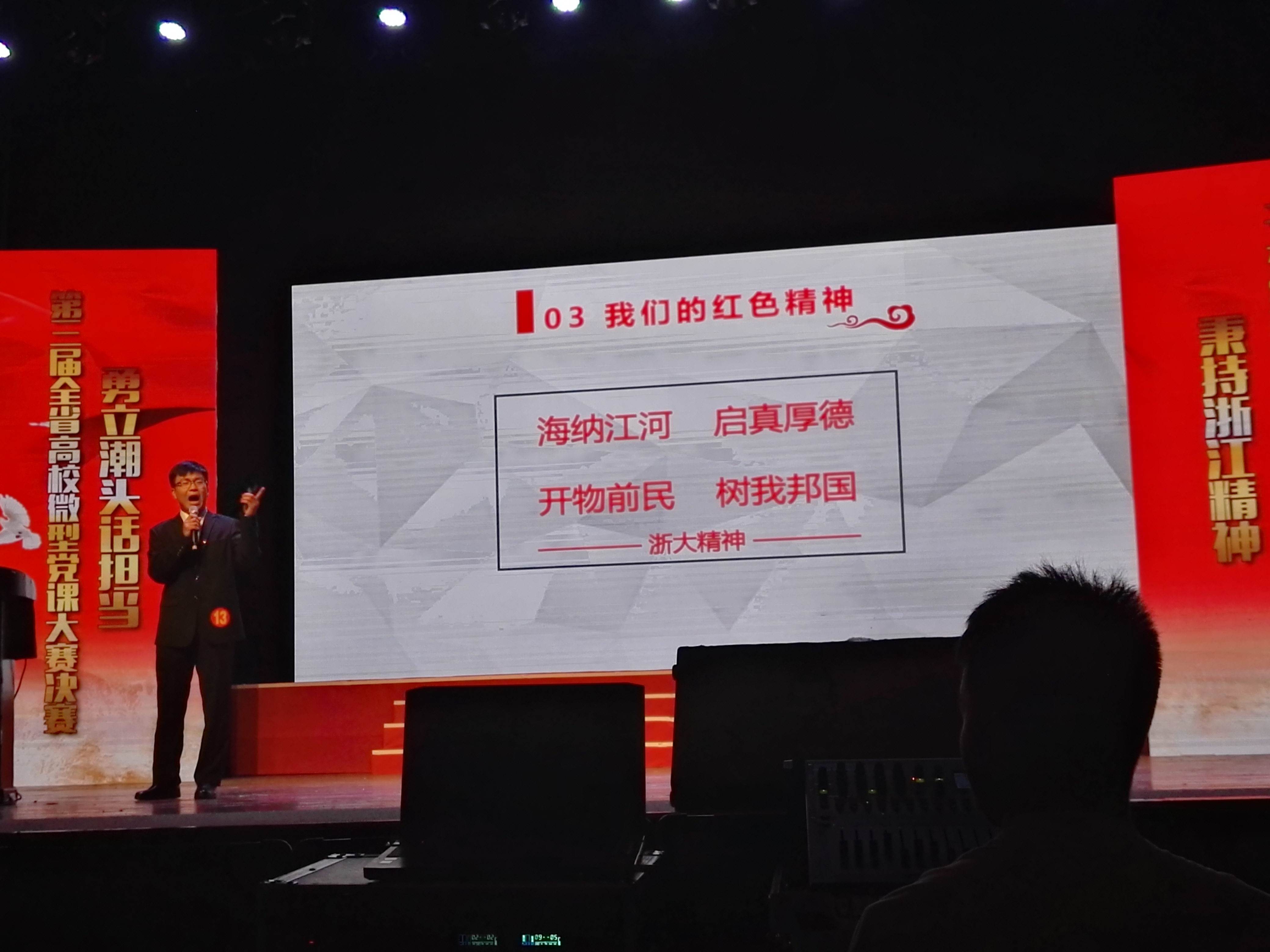 5月25日下午,第三届浙江省高校微型党课大赛在浙江传媒学院举行。本次比赛以“勇立潮头话担当”为主题。全省共有九十余所大专院校参加此次比赛,经过各高校推荐、专家组评审,共有17位教师和2位学生晋级此次决赛。我院本科生崔文康,在现场展示了“红色精神代代传”的主题微型党课,凭借出色的表现,取得第6名的好成绩。