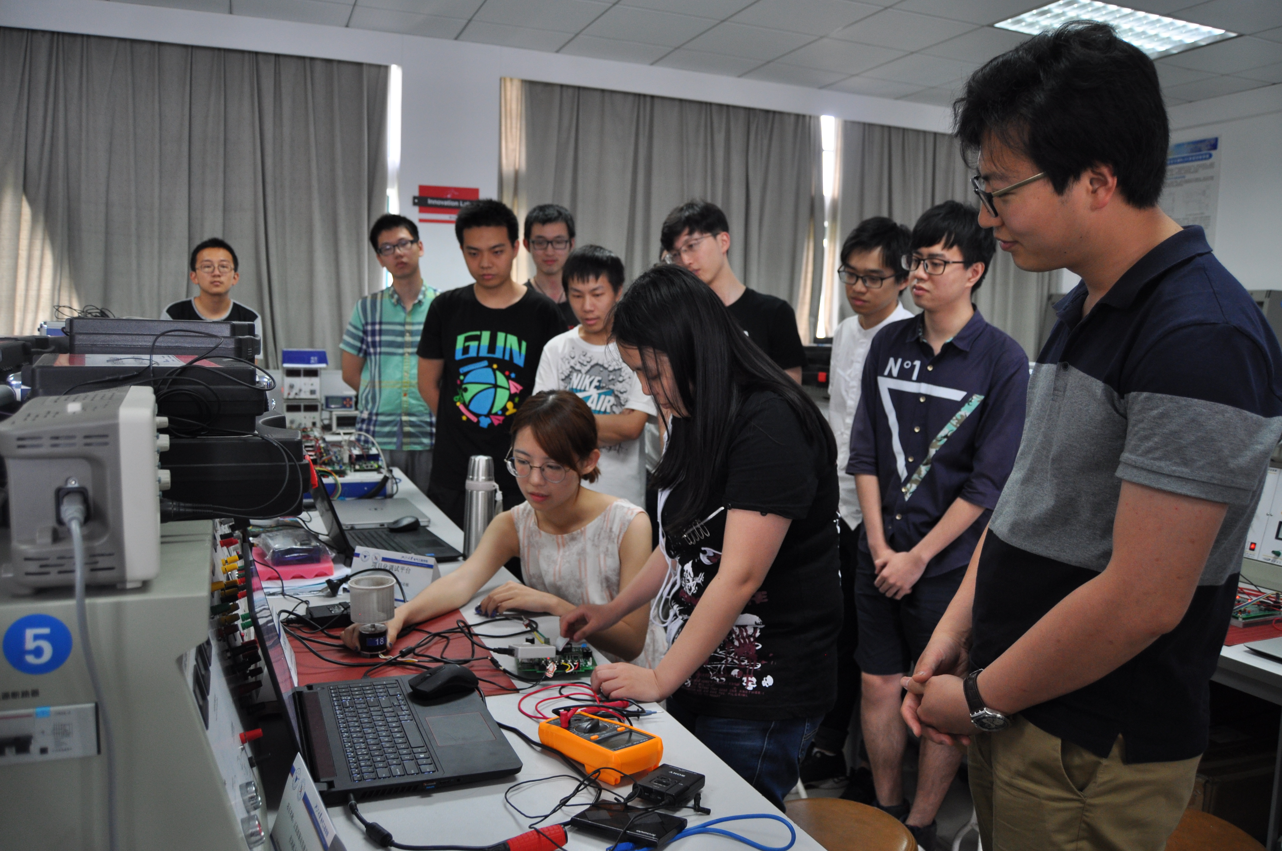 有了这份“见面礼”,项目组的同学们就有了前行的指路灯。但研发过程中的艰辛,却远远超出了他们的预想,大到项目方向的宏观把控,小到一个线圈的绕线、一个器件的焊接,都需要项目组的同学亲力亲为。这也是卢老师一直强调的,“我们不仅要培养会软件的大学生,更要培养会搞硬件的工程师”。在卢老师的演示、指导下,同学们也从最初面对“百线缭绕”的板子的无所适从,从拿起焊枪的磕磕绊绊,从调试实物的百爪挠心渐渐找到了感觉,都像“打了鸡血”一样心无旁骛地为着项目目标而努力。无数个夜晚,项目组的同学都沉浸在硬件设计、控制算法、实物调试中,废寝忘食。“浙大牌油烟机”项目组的谢同学说,项目研发的过程中,他简直变成了“鸽子王”,常常是约了同学去看夜场电影,却因为一次关键的调试没有完成,因为被卢老师坚守在岗位的陪伴指导所感动,最后选择继续埋头苦干。