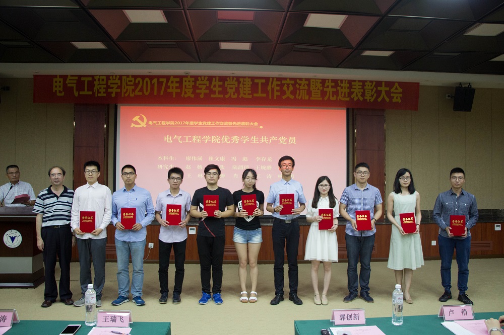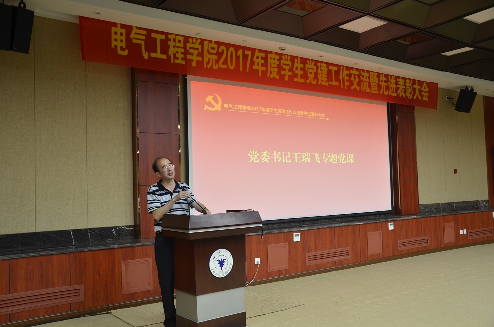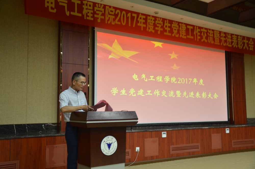 在雄壮庄严的国歌声中,颁奖仪式拉开了序幕,学院党委副书记、副院长郭创新老师宣读了我院光荣入选的校级优秀学生党支部书记刘亚男、校级优秀学生共产党员叶新与王惠如;以及学院优秀学生党支部、优秀学生共产党员和优秀学生党支部书记,授予电气本科生第一党支部等6个支部为学院优秀学生党支部、授予沈莉娟等7位同学为优秀学生党支部书记、授予王婉璐等15位同学为优秀学生共产党员。学院党委书记王瑞飞老师向受表彰的优秀支部与个人颁奖。希望学院各学生支部和全体党员以受表彰的优秀典型为榜样,积极营造“学先进、赶先进”的良好氛围。