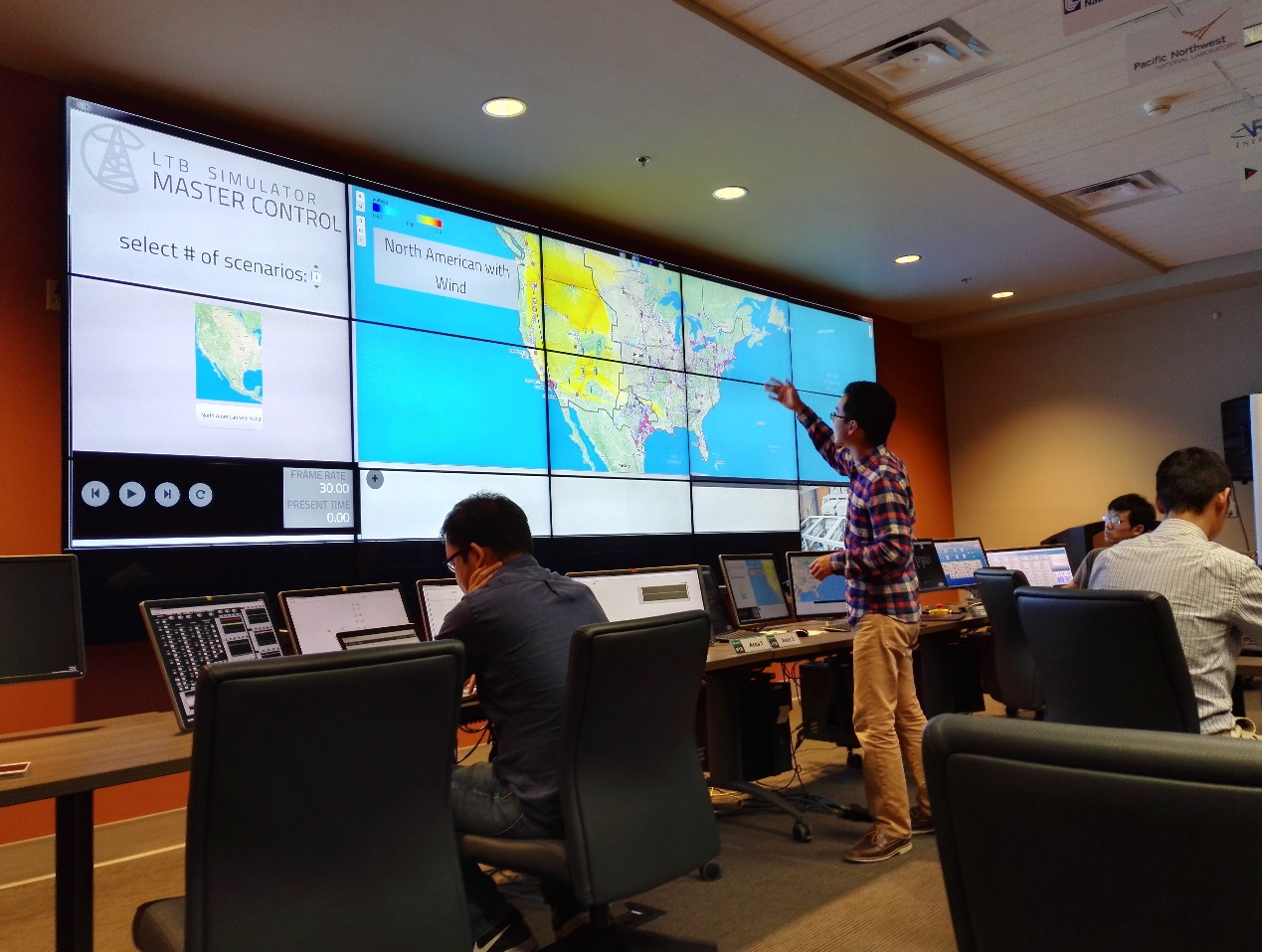 此外,访学团还了解了CURENT中心在电力系统方面的先进研究成果,包括PMU广域相量量测单元研究、电力电子变换器模拟电网特性平台研究、大规模电网仿真平台研究等,了解了CURENT中心对电力系统研究从硬件实物平台到可视化软件平台的研究思路,相比单用matlab仿真,这种研究方式可以将电网故障模拟地更真实,也可以让电网电压、频率等变量的变化更加可视化。