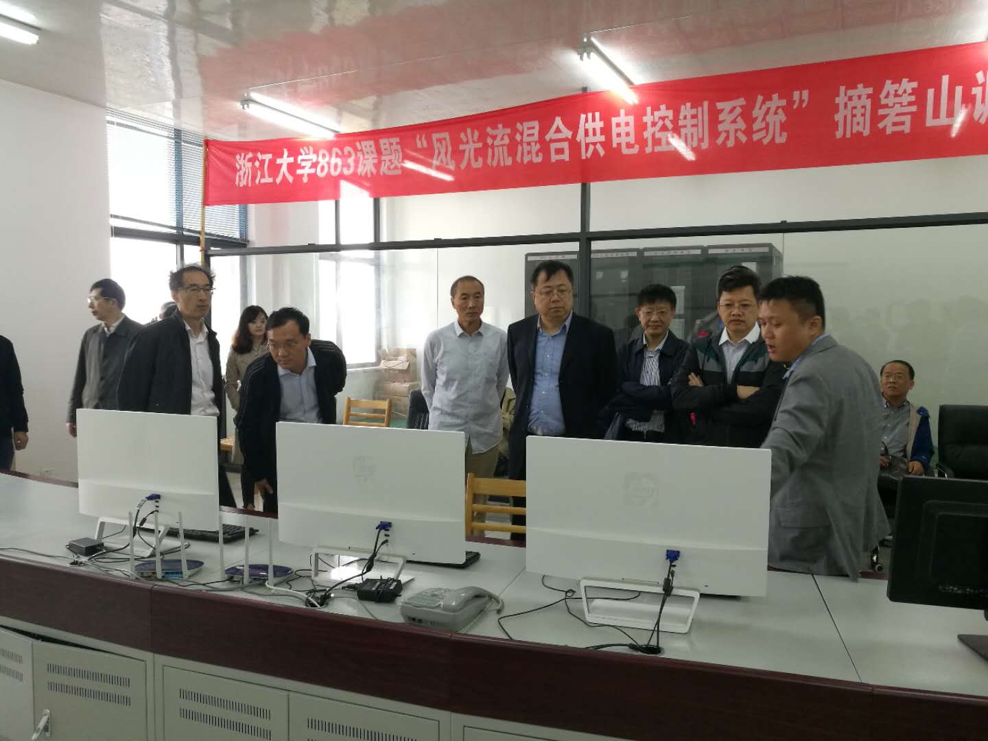 项目验收专家和科技部领导首先乘坐2023白菜网总站大全紫金港号赴浙江舟山摘箬山岛示范点进行现场考察。项目首席专家韦巍教授给专家介绍了示范工程的建设情况。辛焕海教授给各位专家介绍了海岛新能源供电系统多模式运行及无缝切换等功能。