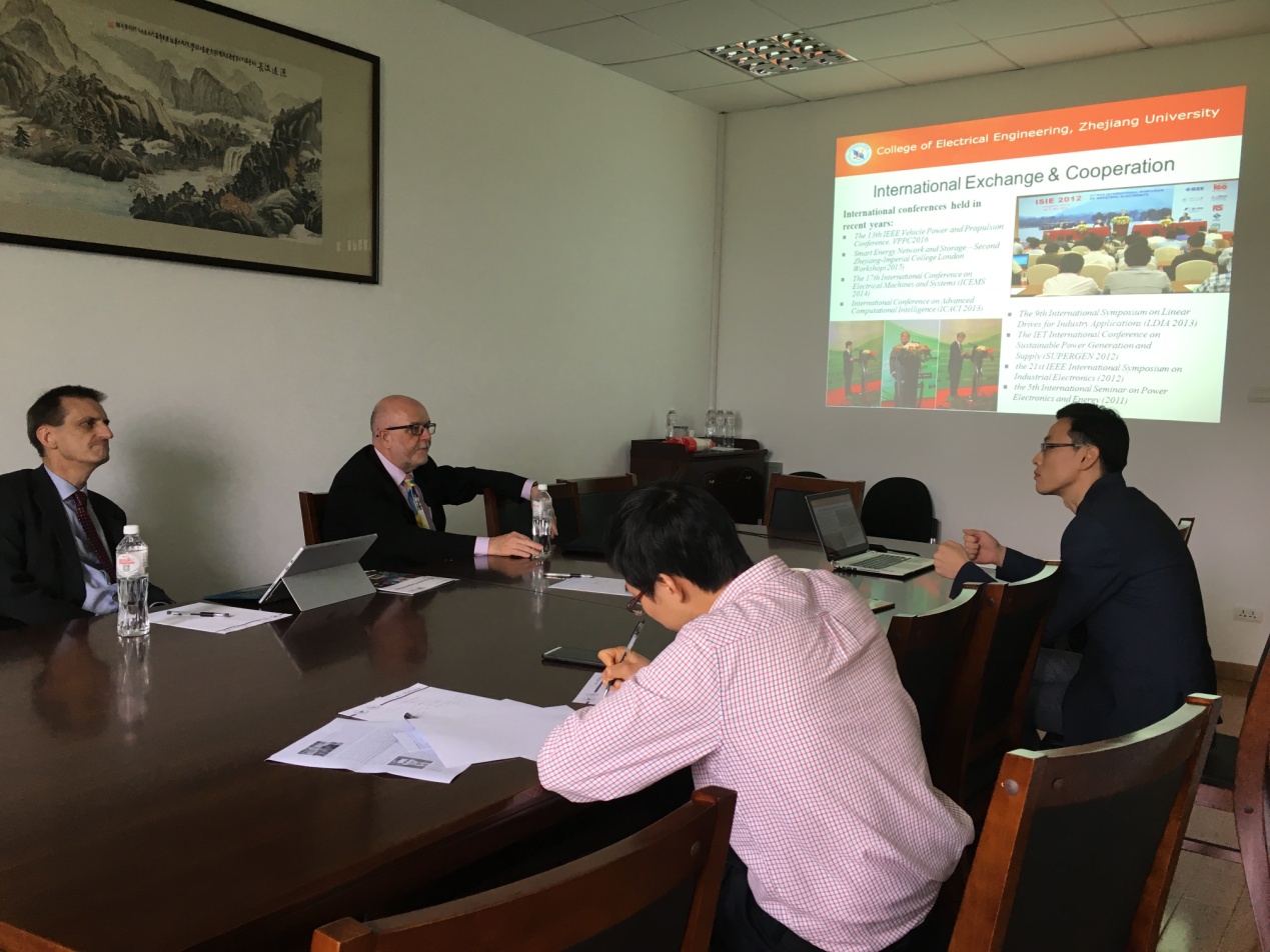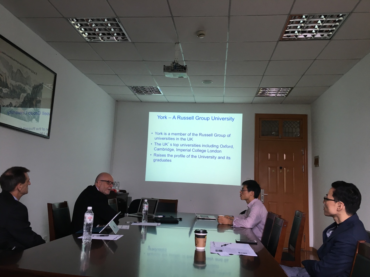 Andy M Tyrrell院长介绍了约克大学的概况及电子工程学院的课程体系、专业要求、学生就业情况,重点介绍了国际教育的现状,他特别提到了约克大学针对海外留学生实行全英授课,制定了针对海外学生的课程计划。他希望双方可以在教师互访、学生交流、联合培养方面展开合作。杨强老师向来宾介绍了电气学院的发展历史,学科和项目进展概况,本科生和研究生教育和就业现状和学生海外交流的情况。他表示,希望两校加强联系,拓展双方优势学科的合作。双方均认为要进一步推进学术交流合作。