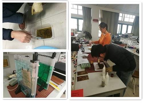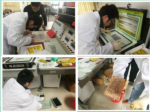 除了能预见的困难之外,研发过程中不可避免的遇到了很多没想到的问题。比如激光打孔机的定位不准问题,一时阻碍了制板的进度,最后经过经验丰富的卢老师指导,季老师和吴老师发挥创新能力,通过打三个定位孔解决了这个难题。培训期间,老师们想到好的点子相互告知,组成了互帮互助团队,无形间消除了学科间的隔阂,增加了相互间的交流,让实验队伍凝聚为一个团结的整体。
