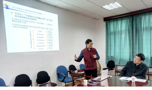 每位老师的实验项目各具特色,探究性实验的侧重角度也各有特点。王正仕老师结合往年学科竞赛的情况,建设了电力电子创新实践教学平台,旨在提高学生的专业竞赛能力;阮秉涛老师综合实验专业知识和学生的兴趣,开发手位感应式无琴键电子琴,指导学生参加竞赛并多次获奖;傅晓程老师侧重FPGA数字电路探究性实验教学平台的建设,为同学学习专业知识提供渠道;韩涛老师着重介绍了智能车系统的实验平台建设,通过探究性实验项目提高同学的实验动手能力……在汇报的交流环节,老师们都提出要重视前置课程和专业课程之间的连贯性,希望不断增强学科之间的交叉性,强调以实验探究为主体、以学生为主线的理念,提高学生的主观能动性,培养学生的实验能力与专业素养。