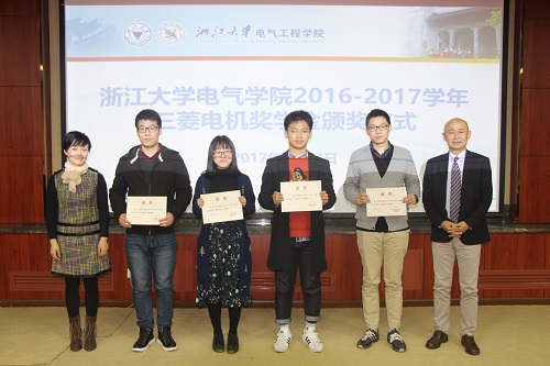 三菱电机在我院设置奖学金已达12年之久,本年度共有4名博士研究生、7名硕士研究生获此殊荣。四个所大亮亲自为11名优秀的浙大学子颁奖并合影留念。他指出三菱电机始终坚持回馈社会、关怀教育的宗旨,今后三菱电机也会继续支持电气学院的人才培养事业,为技术创新、科技进步贡献力量。获奖学生代表杨磊同学表示将铭记三菱电机Changes for Better的目标,为推动社会的创新发展、绿色发展继续奋斗。