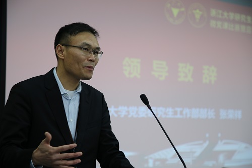 开赛之前,党委研工部部长张荣祥老师致辞,他说研究生理论宣讲团在郑强书记关心和指导下成立的,得到学校各级部门的支持,充分体现了上级领导对我校对于学习贯彻党的十九大精神的关心和支持,更是对我校加强党建工作,更好地围绕中心、服务大局、加快发展的一种鞭策和鼓舞,研究生理论宣讲团的成立在当前来说意义非凡。另外他对于宣讲团的每位成员提出“三点要求”:第一,做理论学习的先锋;第二,做模范引领的表率;第三,做传播新时代特色社会主义思想的传播者。紧接着张晓洁老师汇报了宣讲团成立以来的工作推进情况,她说未来宣讲团还会继续开展丰富的多彩的活动,不断提高宣讲团成员的整体素质,扩大讲团影响力!