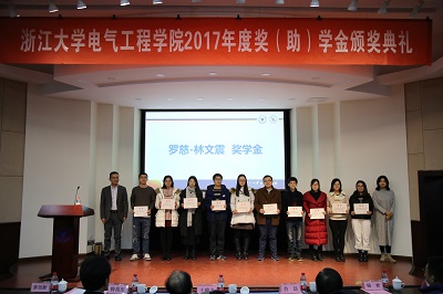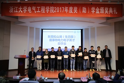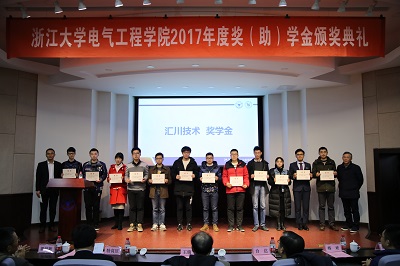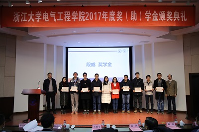 2017年12月19日下午,全讯600cc大白菜官网2016-2017学年奖学金、助学金、奖教金颁奖典礼在玉泉校区邵科馆117报告厅隆重举行。来自华仪电气、台达集团、卧龙电气控股集团、美国2023白菜网总站大全教育基金会、英飞凌、南瑞继保、康舒科技、龙旗集团、杭州茂力半导体技术、东元总合科技、汇川技术、光宝通信、四方继保、国网浙江省电力公司、麦格米特、英飞特、易事特等23个设奖单位的领导和代表出席了此次颁奖典礼。电气工程院党委书记王瑞飞、学院党委副书记郭创新、电机系党支部书记江道灼、应用电子学系党支部书记杜丽、系统系主任徐文渊、电工电子基础教育中心副主任孙晖、电机系电机及其控制研究所副所长杨欢、超大规模集成电路设计研究所丁勇等250余名获奖学生和老师参加了本次颁奖典礼,颁奖典礼由学院党委副书记张晓洁老师主持。