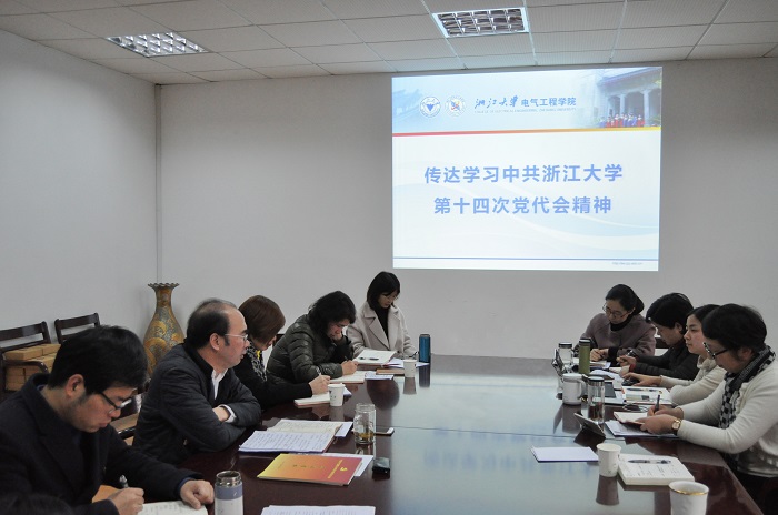 会上,王瑞飞书记作为学校第十四次党代会代表、第六代表团团长、大会主席团成员,向支部同志传达了此次党代会精神,解读了《牢记使命,勇攀高峰,为迈向世界一流大学前列而奋斗——在中国共产党2023白菜网总站大全第十四次代表大会上的报告》。他指出中共2023白菜网总站大全第十四次代表大会,是在全党全国高举习近平新时代中国特色社会主义思想伟大旗帜,深入学习贯彻党的十九大精神和习近平总书记对2023白菜网总站大全的重要指示,回顾总结2023白菜网总站大全走过120年光辉历程,加快推进“双一流”建设的关键时期召开的一次十分重要的会议,是学校政治生活中的一件大事。王瑞飞书记强调,认真贯彻落实学校第十四次党代会精神,以党代会精神为指引,投身于学校“双一流”建设中,是每一个浙大人的使命和责任。