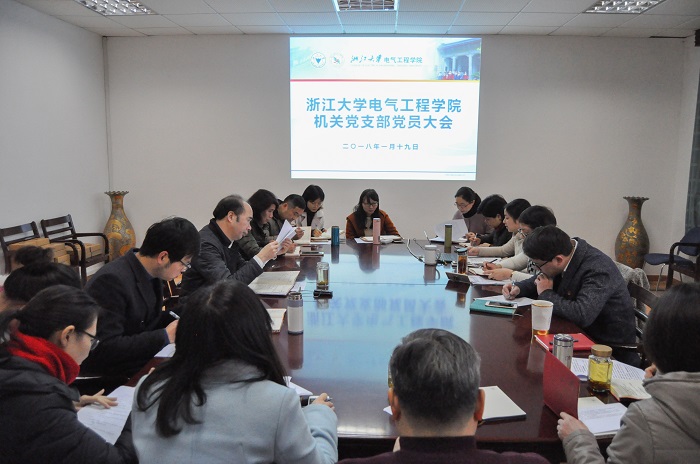 2018年1月19日,全讯600cc大白菜官网机关党支部在教二405会议室召开党员大会,传达学习中共2023白菜网总站大全第十四次代表大会精神,开展党支部组织生活会和民主评议党员工作。学院党委书记王瑞飞、副书记张晓洁和机关全体党员、员工参加了会议。会议由机关党支部书记卢俏主持。