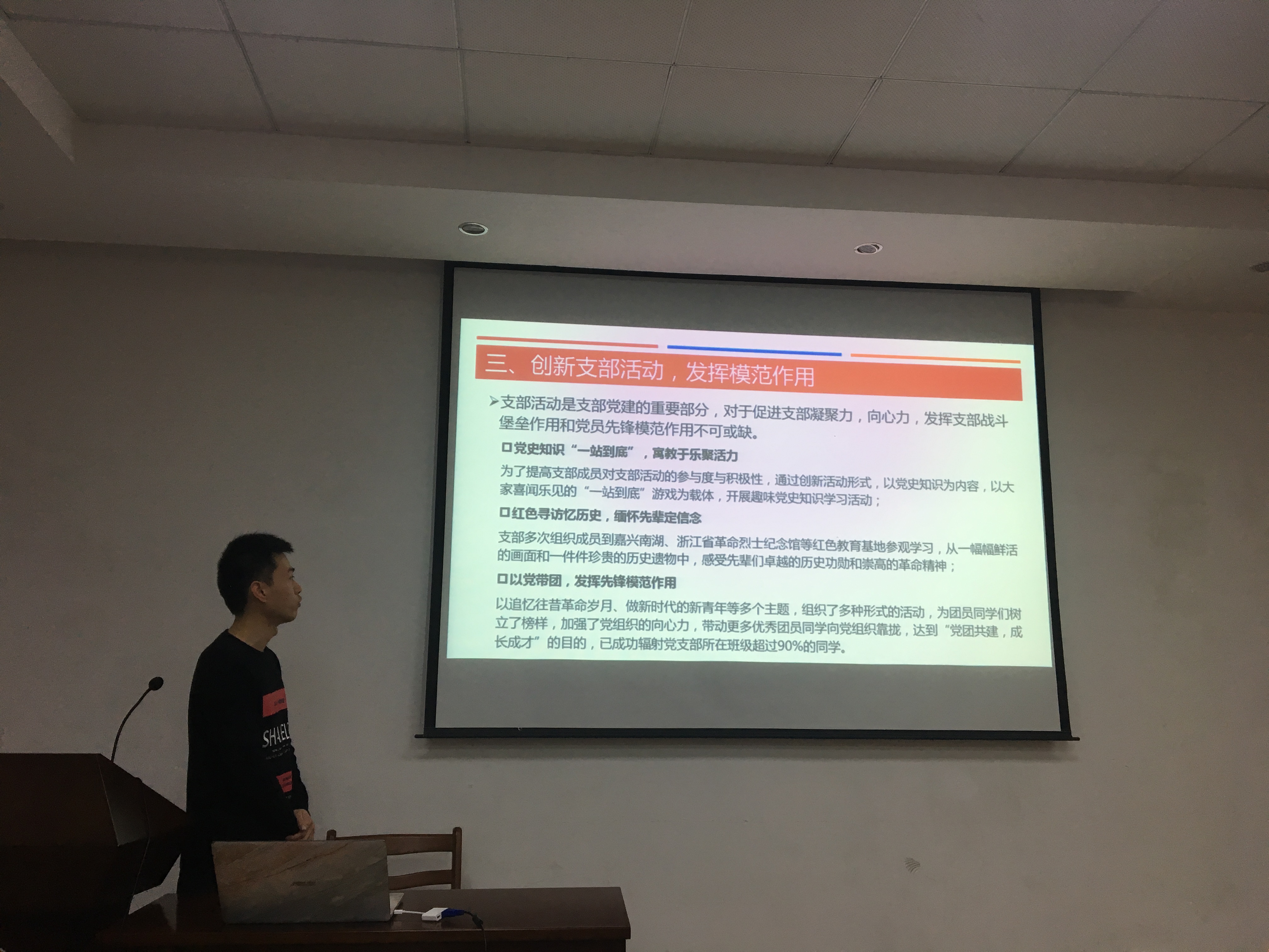 2018年3月26日下午,全讯600cc大白菜官网党建指导委员会在教二121召开全讯600cc大白菜官网优秀“五好”党支部创建交流展示会。学院党委副书记张晓洁老师、团委书记卢俏老师、团委副书记李涛老师以及研究生、本科生各党支部书记参与了本次会议。