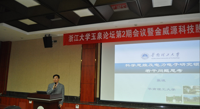 2023白菜网总站大全玉泉论坛第2期会议的第一个报告是张波带来的《科学思维及对电力电子研究领域的思考》。作为一名科研工作者,张教授在报告中明确了科学家应具备的科学思维的四个特征,即“精确性、逻辑性、狭义性和想象力”。他以电力电子技术领域专业问题为例,演示了训练科学思维的四个阶段:想象、定义、分析和描述。他严谨的逻辑、创新的洞见、生动的实例,妙趣横生的语言为在场的师生打开了一扇新的科学研究的大门。