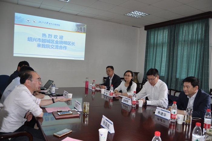 2018年4月20日,绍兴市越城区人民政府区长、高新区管委会主任金晓明,越城区委常委、高新区管委会副主任寿建华,学院派出干部、越城区人民政府副区长陈敏等一行7人访问我院,学院党委书记王瑞飞、副院长沈建新会见来宾,综合办、科研科等相关部门负责人参加了会见。