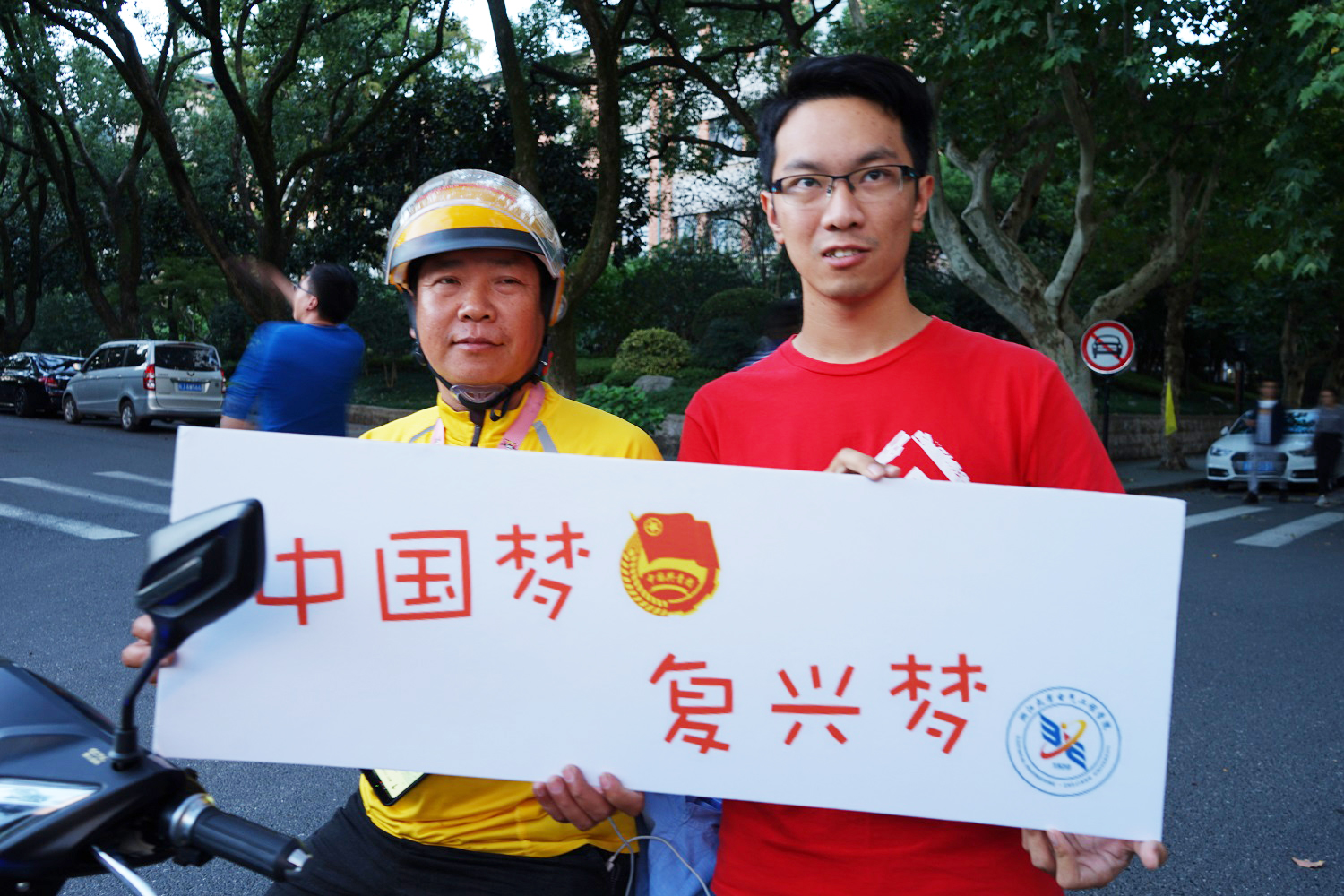 “迎祖国华诞,政通人和,梦启复兴臻盛世;恰同学少年,才高志远,求是创新争一流。”下午,2016级的电气学子们在玉泉校区开展“当代青年的中国梦”主题团日活动。细密如织的大草坪上、雄伟峻拔的毛泽东像前、文气氤氲教学楼中,时常可见电气学子们的身影在穿梭,时不时停在某一位行人身边,邀请他为我们的祖国献礼,说出心中最美好的期冀,写下他们心中最真挚的祝福。电气学子、在校学生、保安大叔、宿管大叔、食堂阿姨、稚嫩孩童、路人游客、外卖小哥……在他们真挚的祝福中共庆祖国生辰,在他们如花的笑靥中共祝祖国华诞!