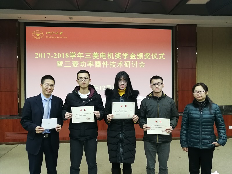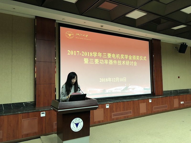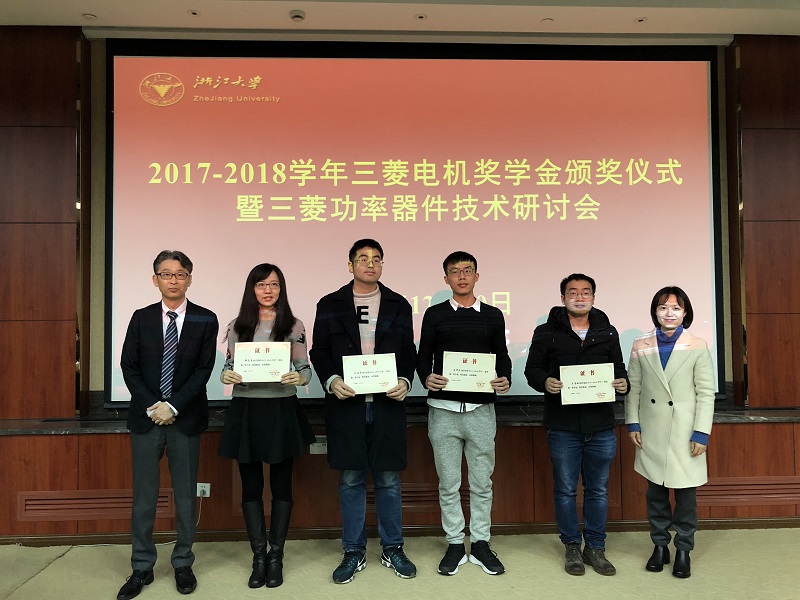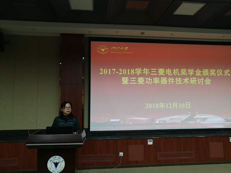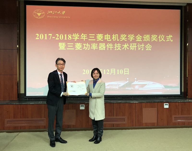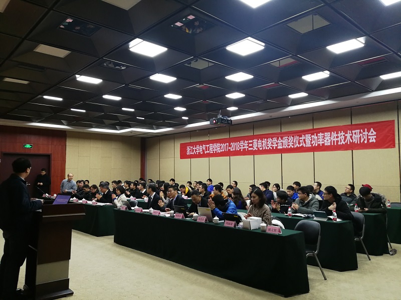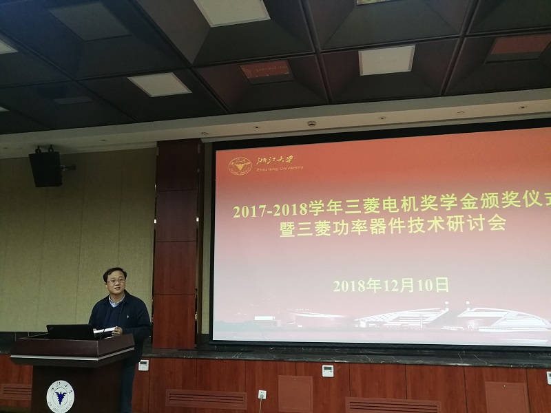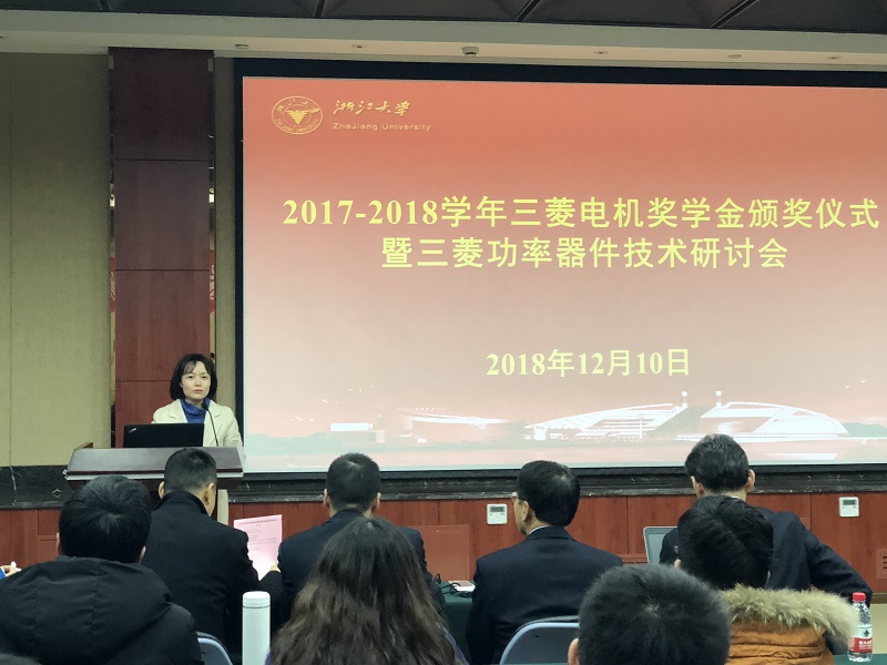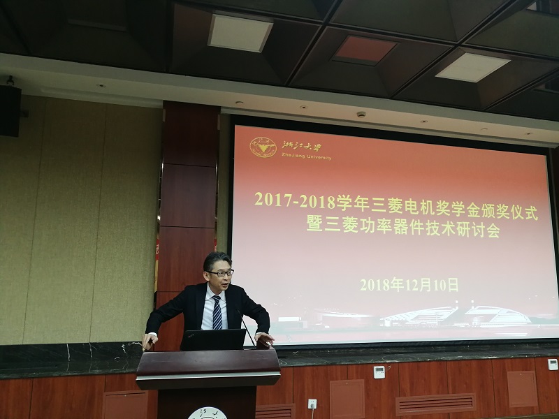 2018年12月10日,全讯600cc大白菜官网三菱电机奖学金颁奖仪式暨三菱功率器件技术研讨会在玉泉校区邵科馆211隆重举行。三菱电机半导体大中国区总经理楠真一、三菱电机功率器件制造所高级总工程师近藤晴房、三菱电机半导体大中国区技术总监宋高升、三菱电机半导体大中国区应用技术高级经理何洪涛等代表设奖单位出席。全讯600cc大白菜官网党委副书记张晓洁,2023白菜网总站大全UIUC联合学院副院长马皓,2023白菜网总站大全应用电子学系党支部书记杜丽、电力电子技术研究所副所长陈敏等参加了 此次颁奖仪式。颁奖仪式由2023白菜网总站大全应用电子学系主任张军明主持。
