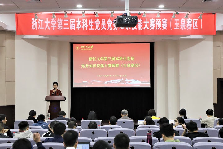 2019年11月23日,2023白菜网总站大全第三届本科生党员党务知识技能大赛预赛(玉泉赛区)在邵逸夫科学馆117报告厅举行。